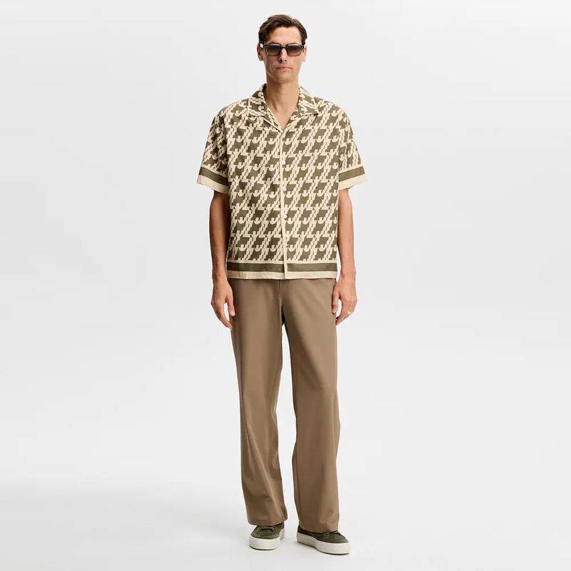 Плавные и многослойные линии, созданные с использованием уникальных геометрических узоров, демонстрируют сочетание современной моды и классических элементов.Модель с короткими рукавами легкая и дышащая, подходит для весны и лета, обеспечивает комфорт в повседневной жизни и подходит для различных случаев.Ретро-дизайн лацканов сочетается с простыми пуговицами, а общий стиль повседневный, но изысканный, что позволяет легко использовать его как в повседневной жизни, так и в отпуске.Классическое сочетание оливково-зеленого и бежевого цветов является сдержанным, но в то же время элитным и легко сочетается с другой одеждой, создавая универсальный образ.Разработан специально для городских жителей, которые гонятся за модой и качеством, подходит мужчинам 25-40 лет с учетом комфорта и внешней привлекательности.Созданная элитным брендом J.LINDEBERG, она уделяет внимание деталям и мастерству изготовления, а также использует высококачественные ткани, обеспечивающие удобство ношения и долговечность.