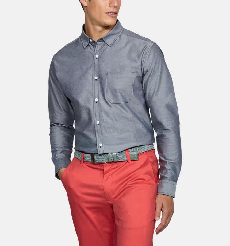 Подлинный и майский мужской топ UA Performance Oxford Golf Long -sleed Rube 1311246