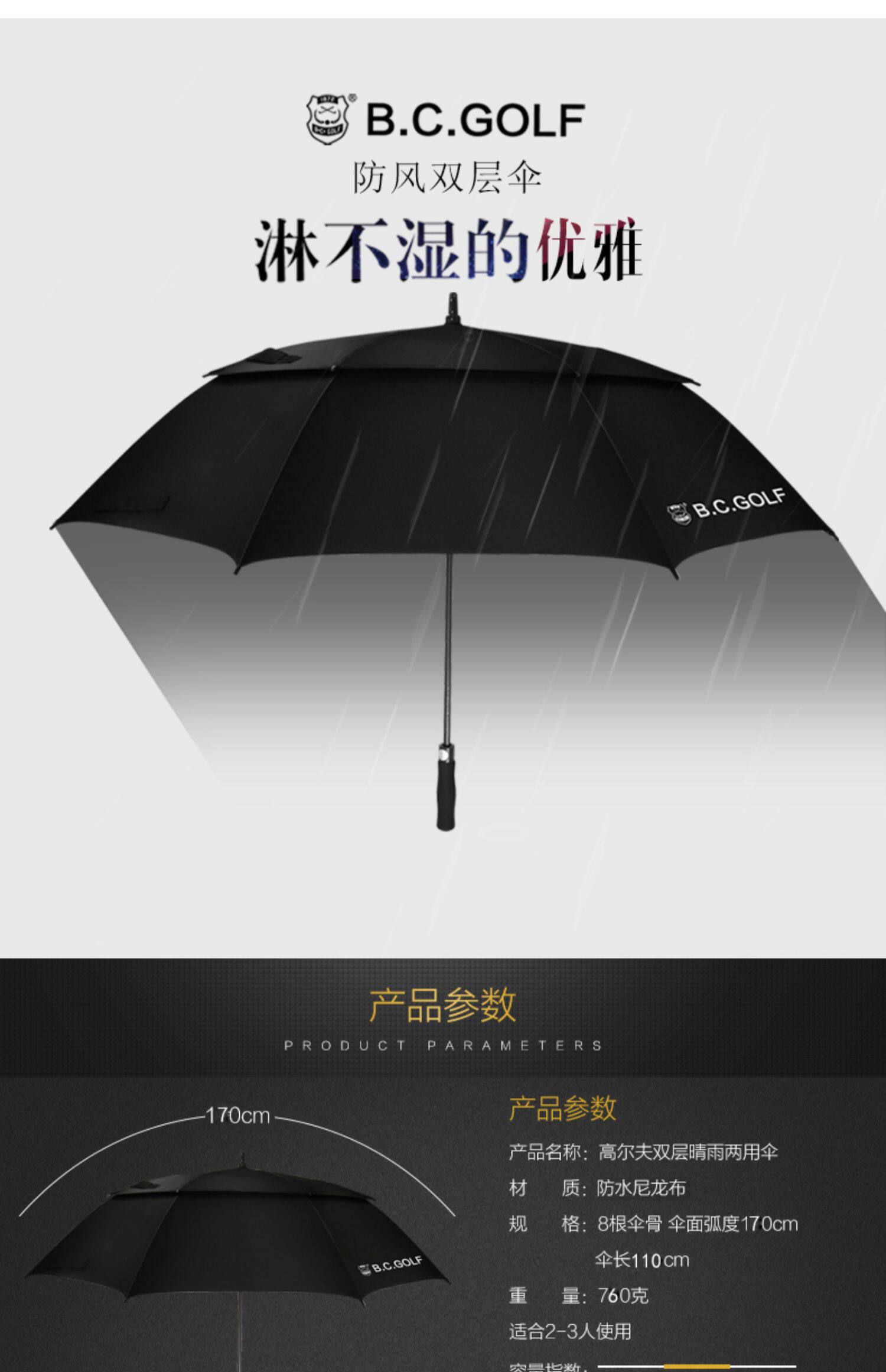 Bcgolf Golf Umbrella Double -Layer Wind -Ronation большой зонтик против ветра и сильного дождя и дождя, дождь и дождь, настройка бизнес -зонтика