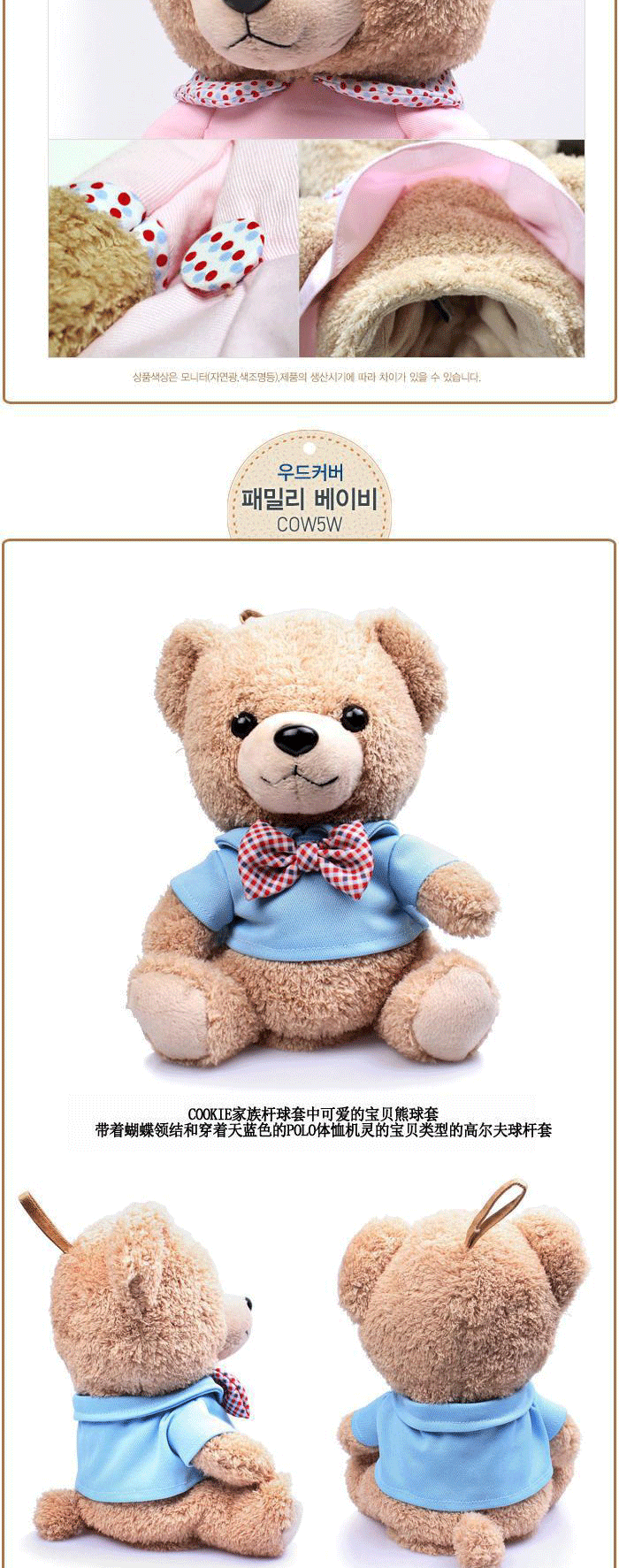 Корейский пятно плюшевого медведя гольф мультфильм плюс № 1 дерево № 3 деревянный № 5 деревянный клуб, защищающий плюшевый набор