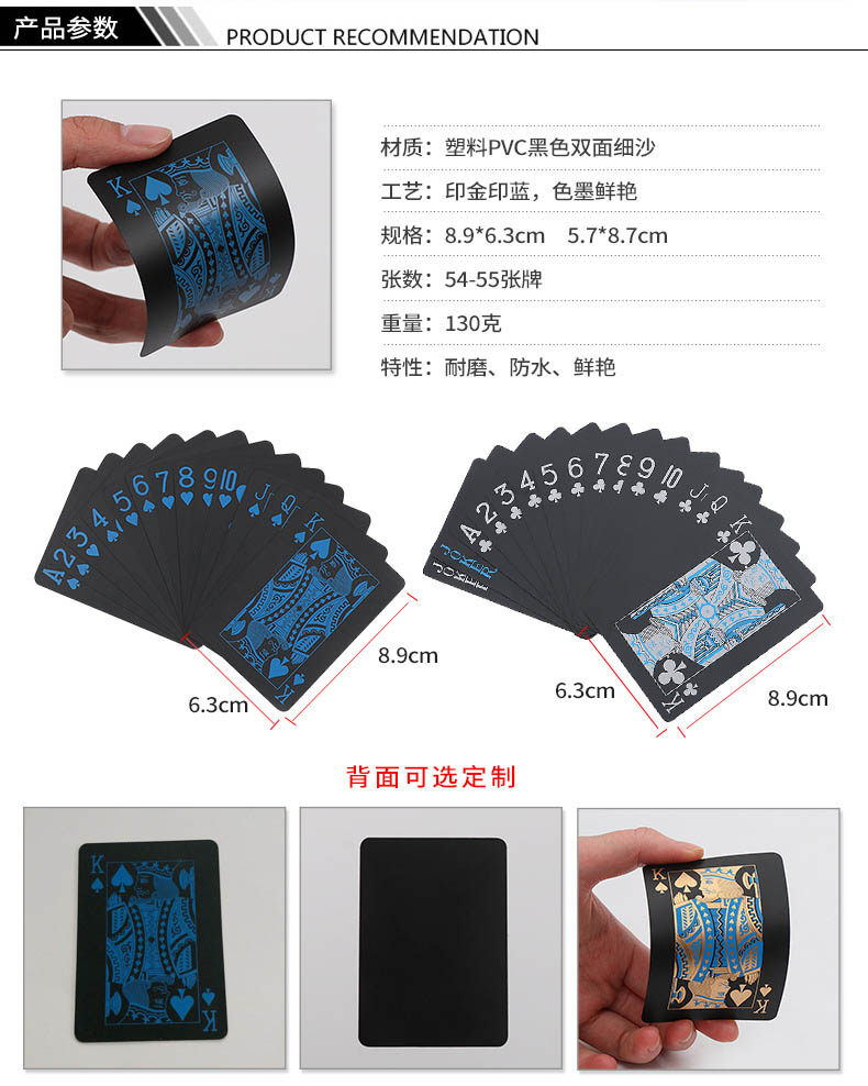 Матовые игральные карты из ПВХ, волшебная водонепроницаемая черная настольная игра, делается под заказ, с печатью вашего логотипа