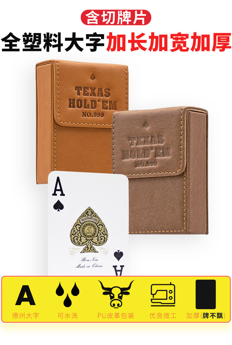 Специальная карта для покера Техасский Холдем, двусторонняя матовая, утолщенная, водонепроницаемая, не складывающаяся, ПВХ, моющаяся, утолщенная и удлиненная, с крупными пластиковыми символами