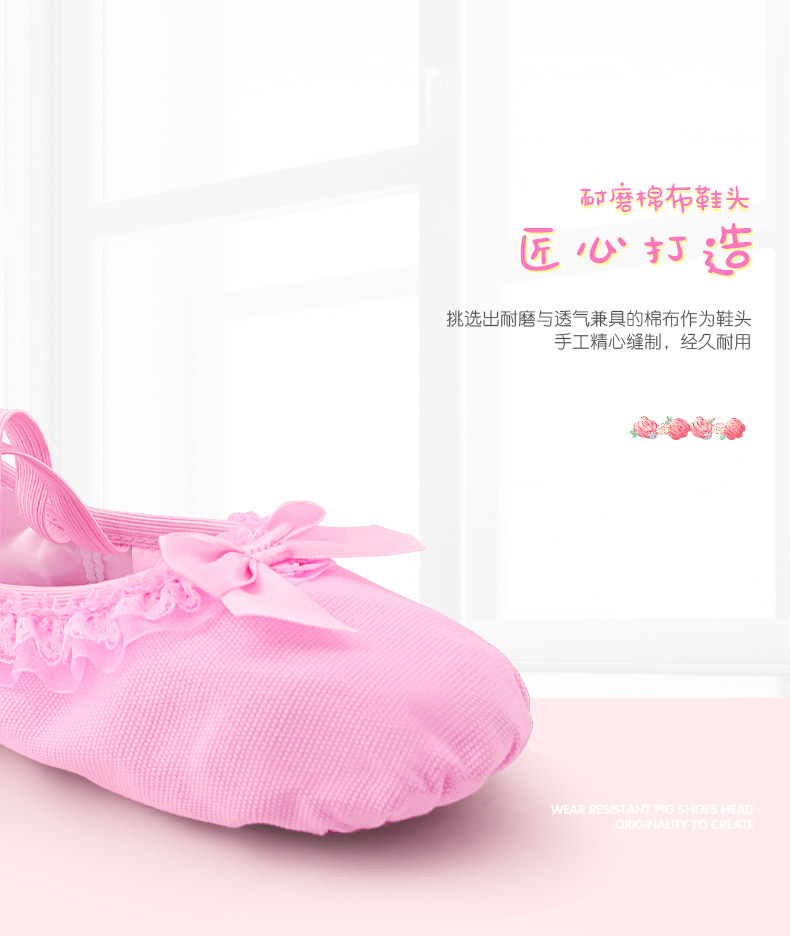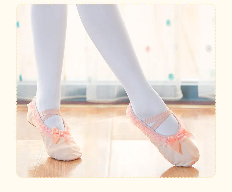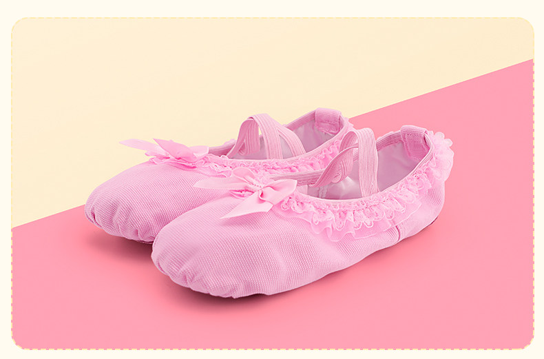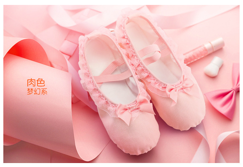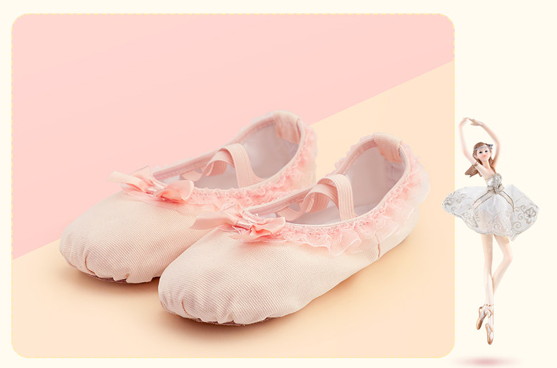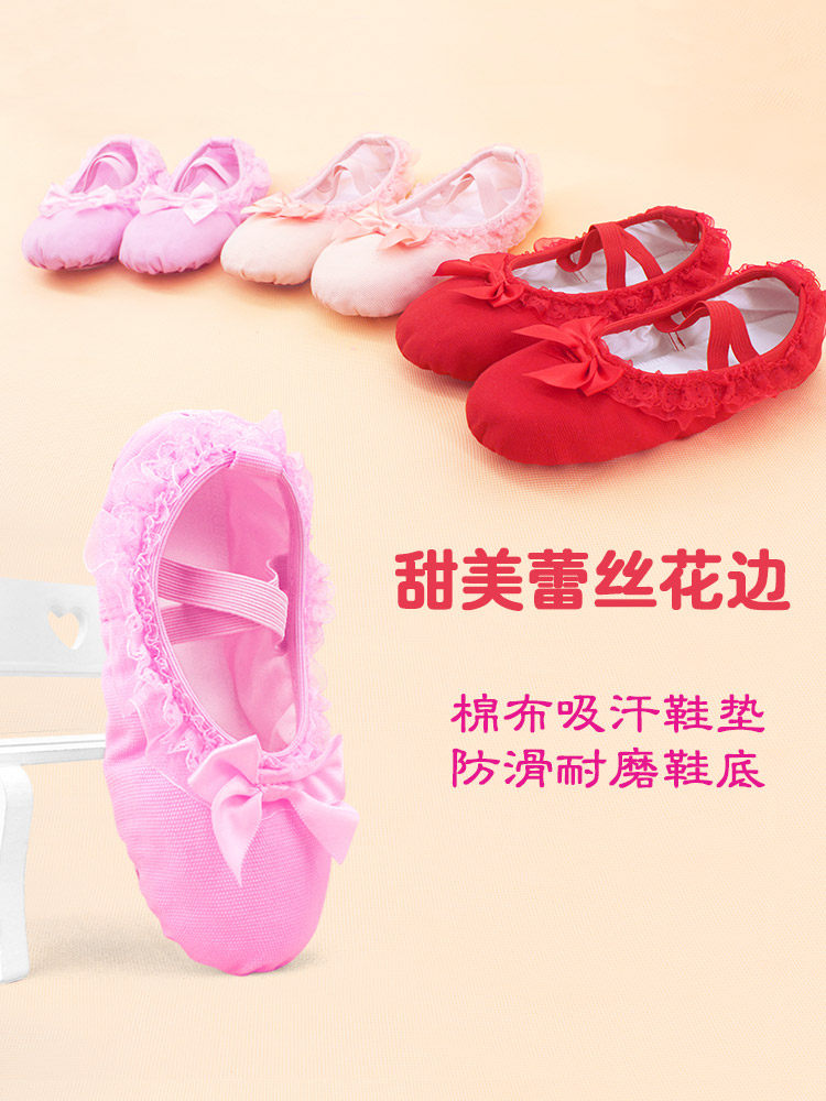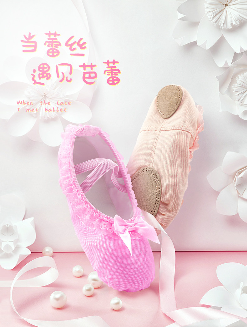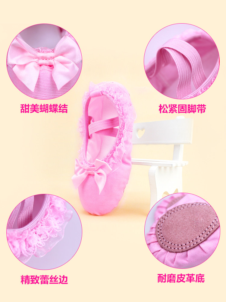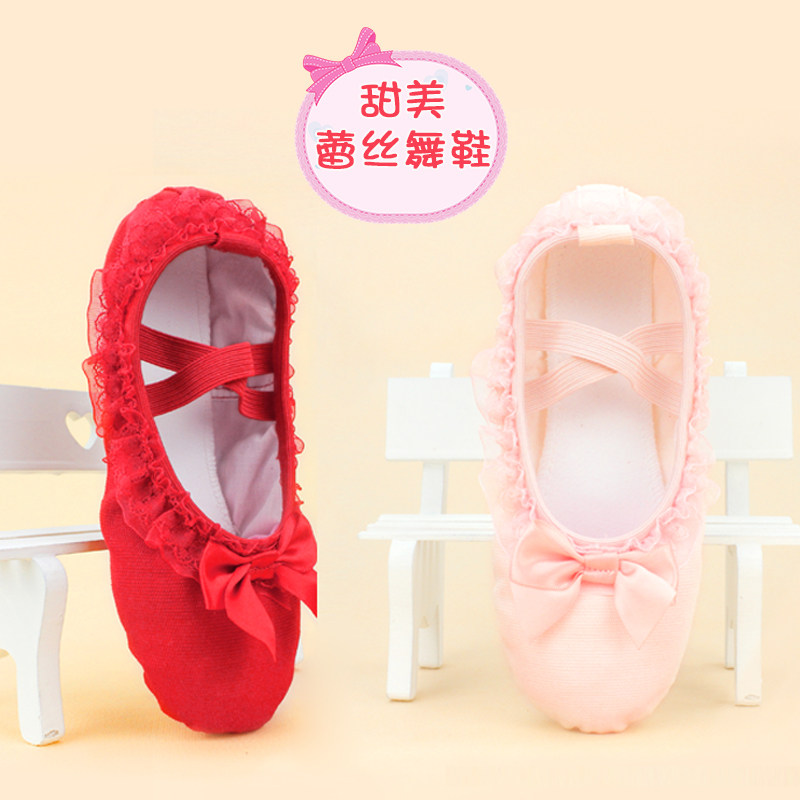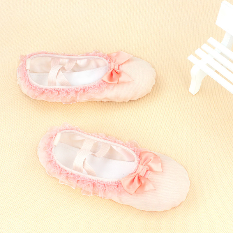Детская танцевальная обувь, балетки на мягкой подошве для девочек, розовые кеды, танцевальная обувь для маленьких девочек, туфли с кошачьими когтями с кружевными краями.