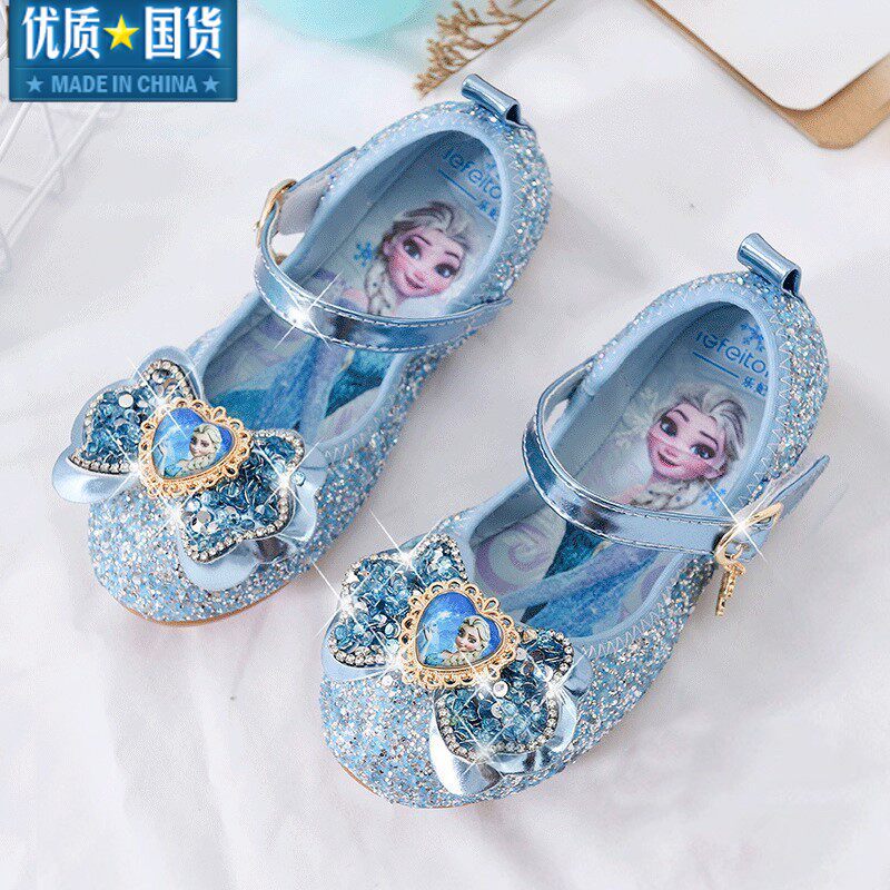Официальная аутентичная обувь принцессы Эльзы для девочек, модные весенне-осенние модные женские туфли Эльзы на мягкой подошве «Холодное сердце» с кристаллами