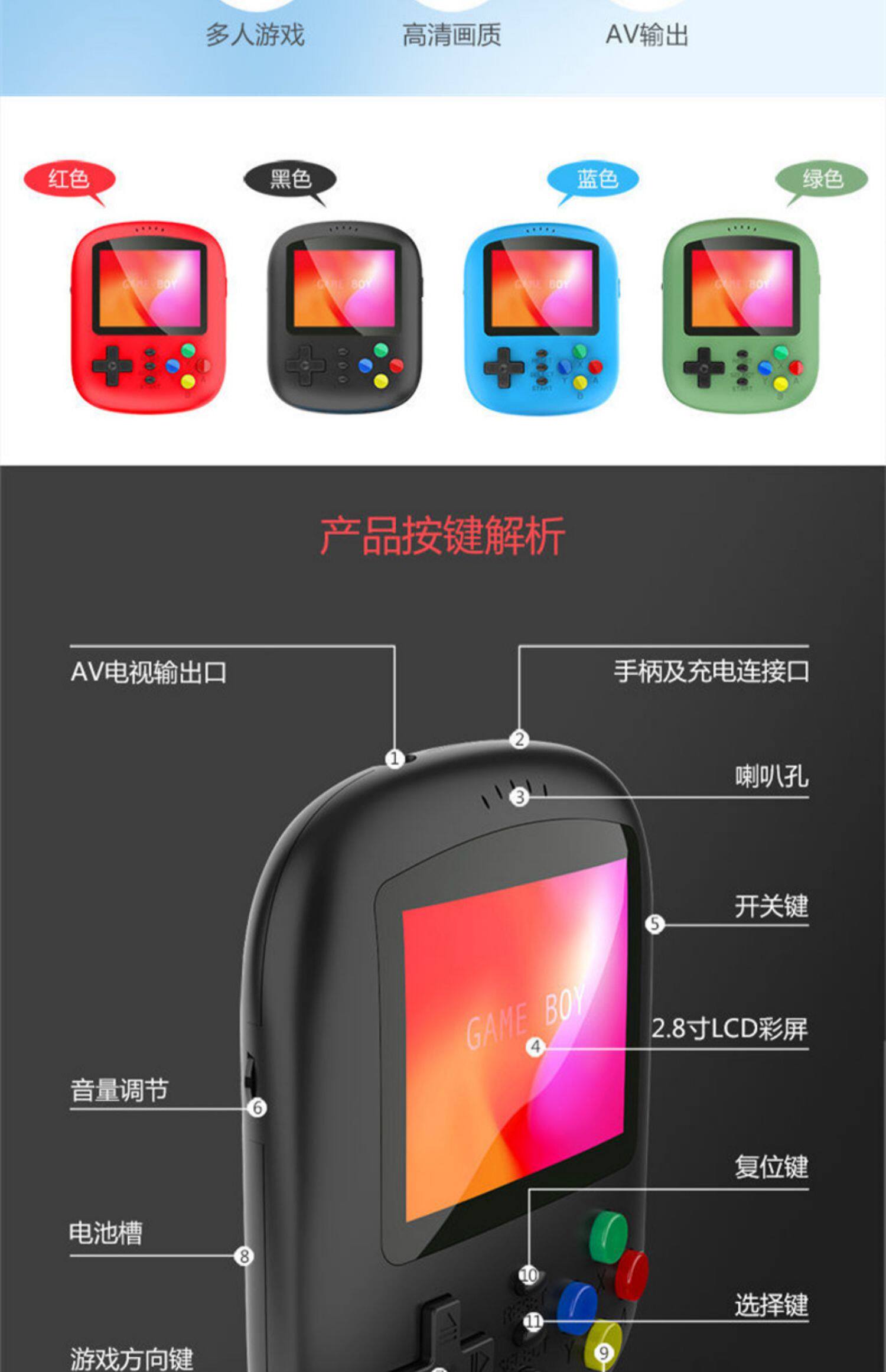 Маленькая игровая приставка, классический файтинговый экран для двоих, 3.0 дюймов, модернизированная версия, ностальгия