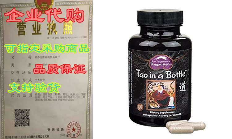 Tao in a Bottleэто драконные травы номер один, продающий инкапсулированный продукт. Его основные активные ингредиенты - аминокислотаL–theanine, Естественно найдено в зеленом чае. Л.–Теанин - это уникальные ингредиенты с мощным анти–Стрессовые действия при употреблении в правильной дозе. Это способствует расслаблению с сонливостью. Кроме того,Tao in a BottleЯвляется мощной адаптогенной формулой, которая изготовлена из экстрактов концентральных адаптогенов (тонических трав) в мире: Gynostemma, Duanwood Reis Hi, женьшень, сибирский женьшень (Eleuthero), Schizandra, тибетан -родиола, астрагал и гинкго билоба.