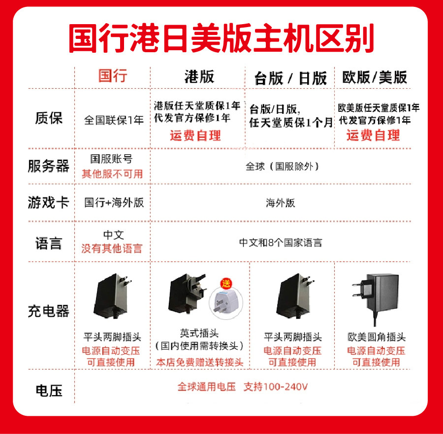 За исключением Национального банка, японская, европейская и гонконгская версии имеют различия только в разъемах, и реальной разницы в использовании нет.