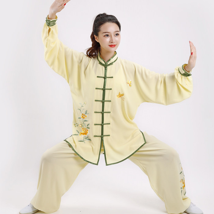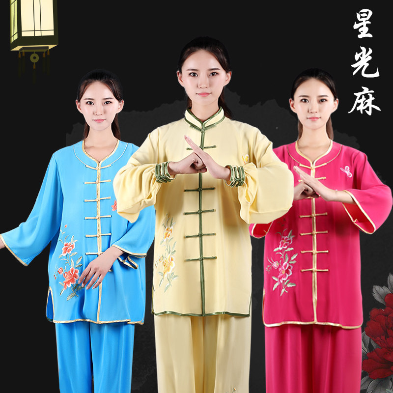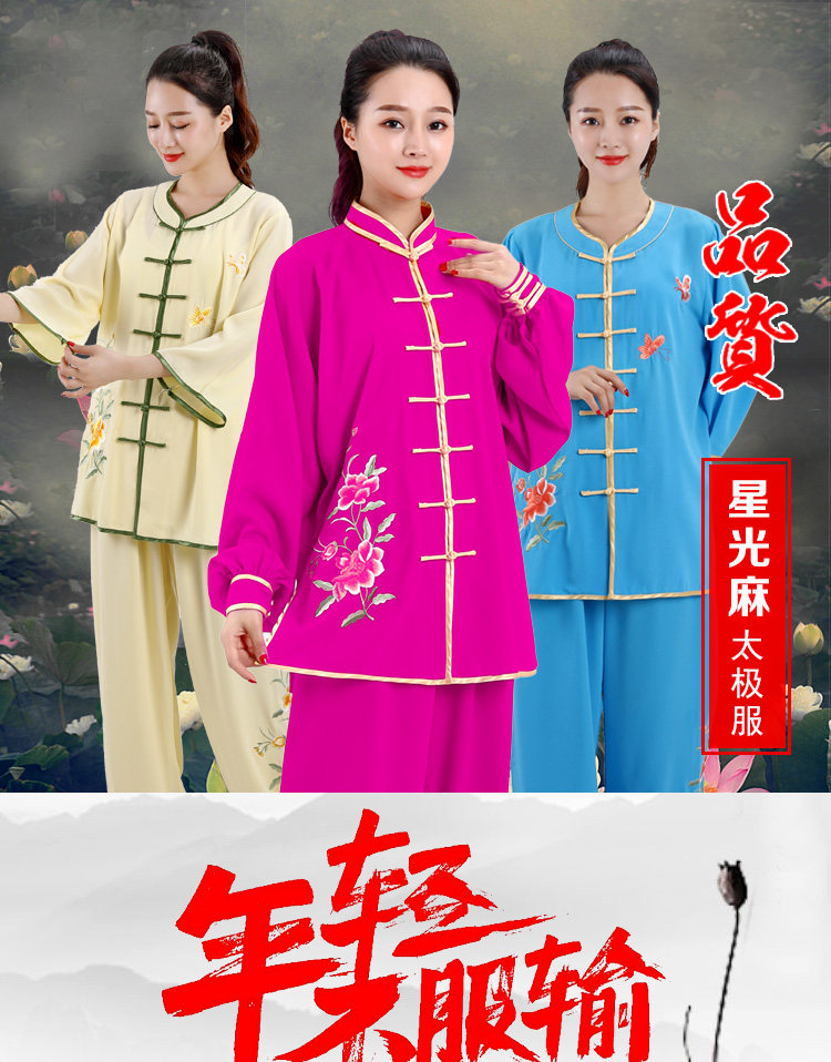 Дышащая спортивная одежда для единоборств, с вышивкой, короткий рукав, осенняя, для среднего возраста, из хлопка и льна
