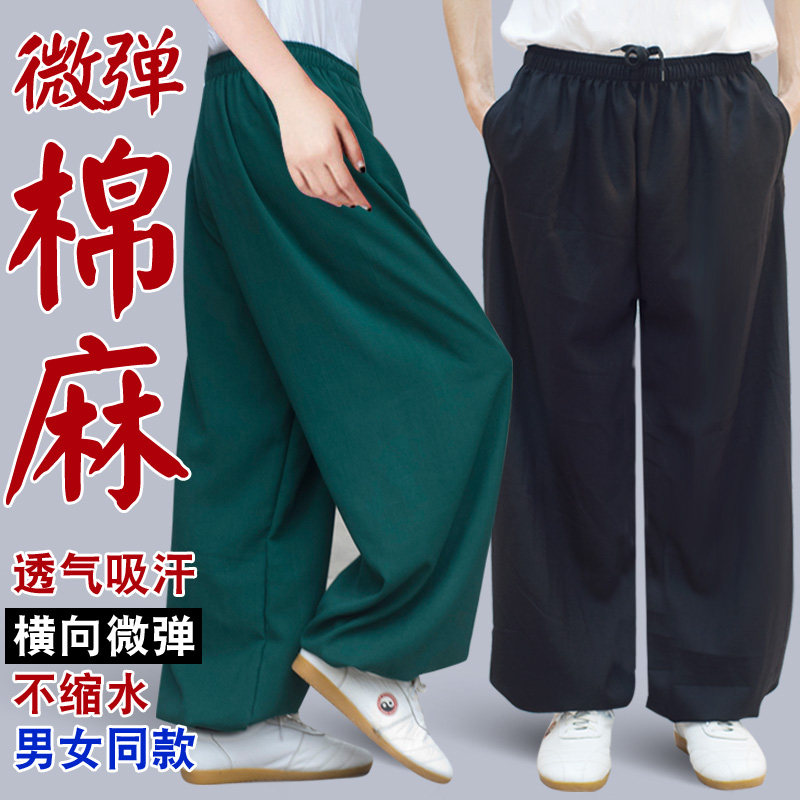 Летние дышащие эластичные штаны для единоборств для тренировок, спортивная одежда, из хлопка и льна