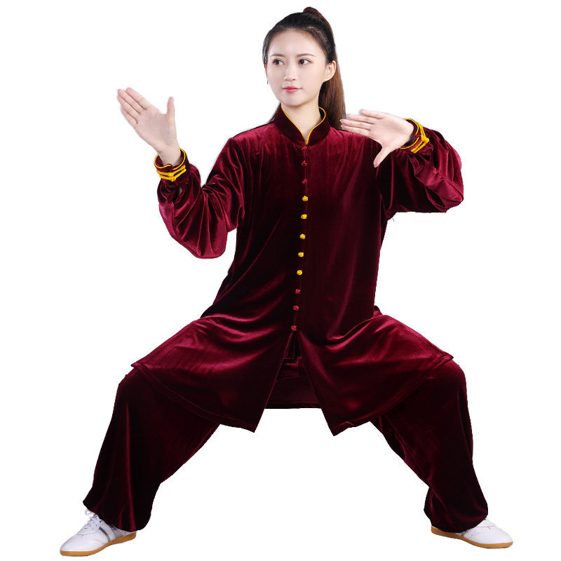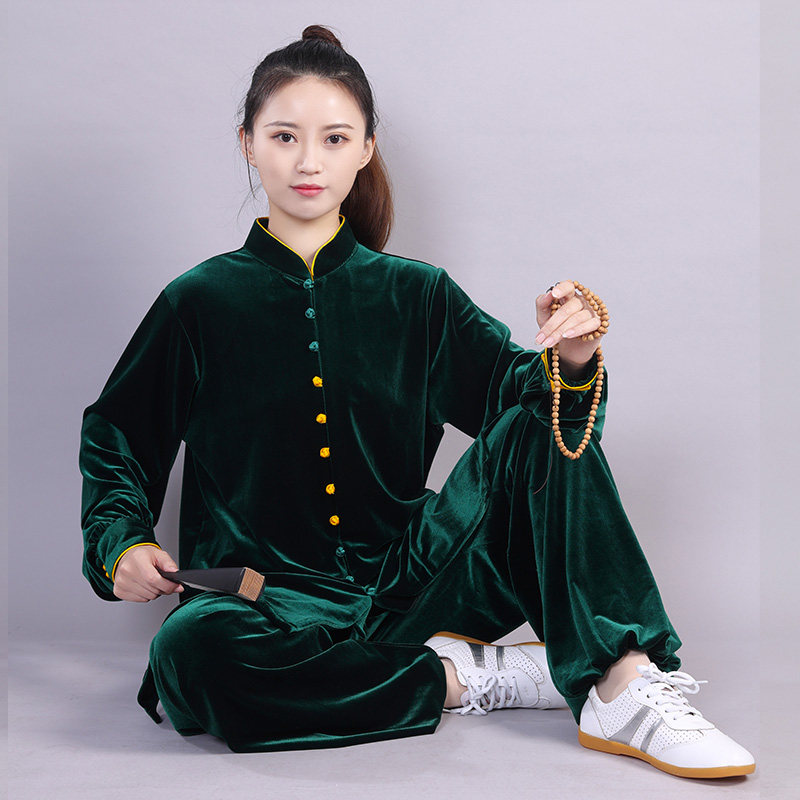 Демисезонный бархатный флисовый длинный костюм для единоборств, осенний сезон, с вышивкой, средней длины
