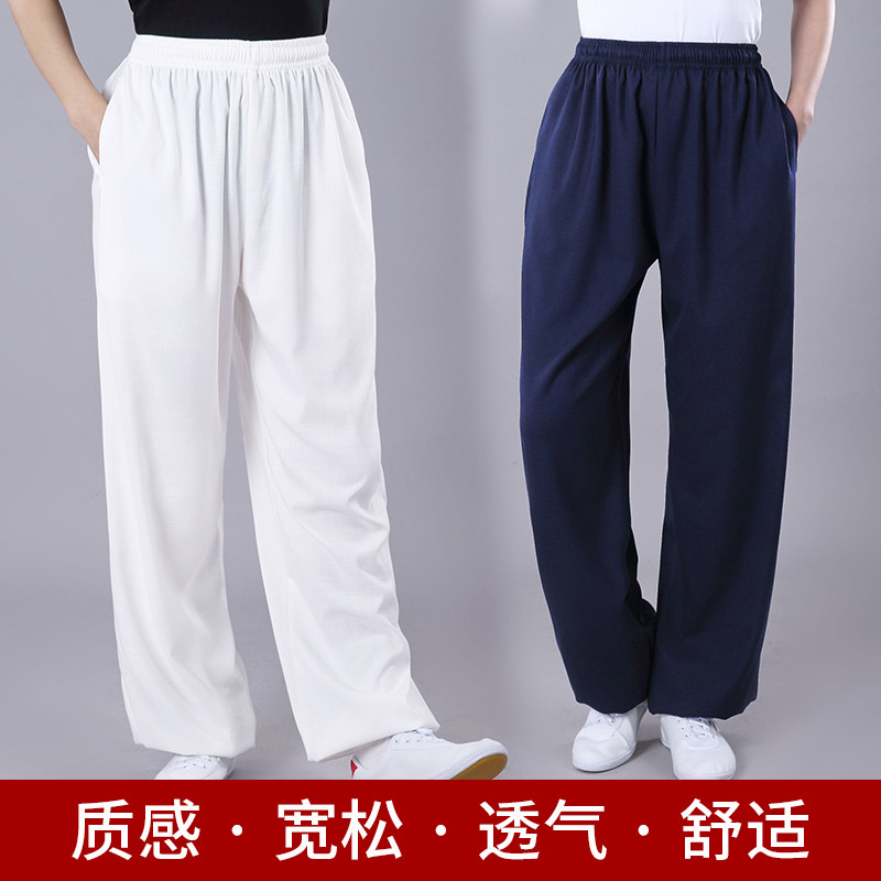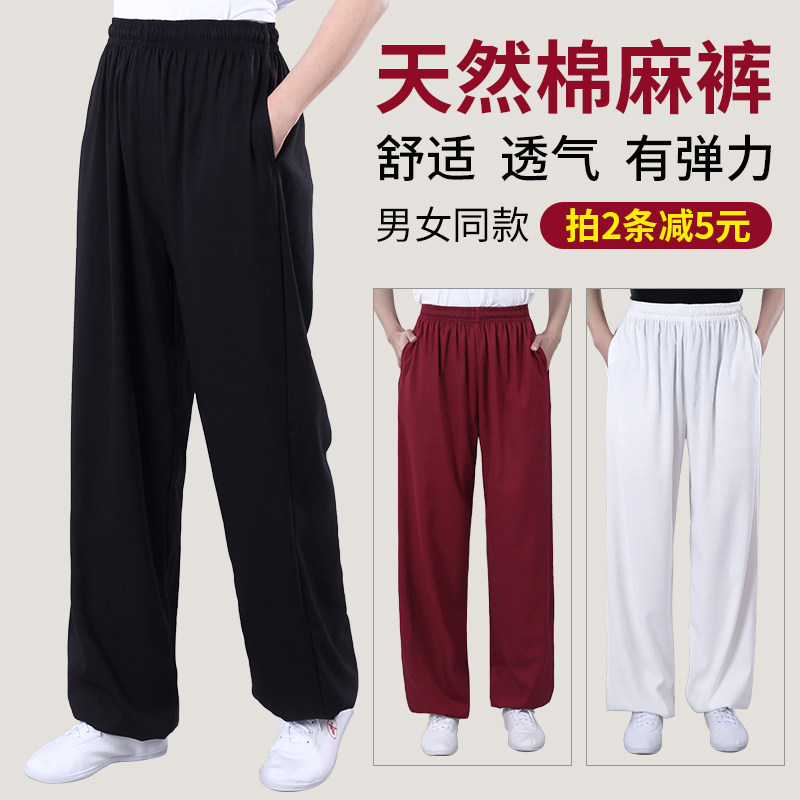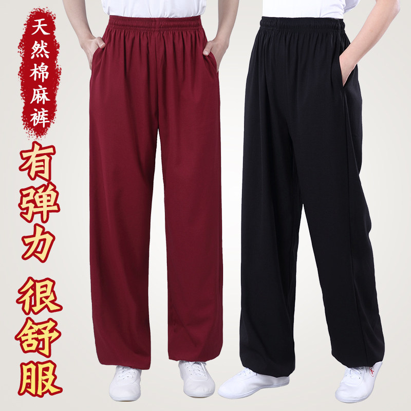 Осенние эластичные штаны подходит для мужчин и женщин, элитный фонарь для единоборств, из хлопка и льна, свободный крой