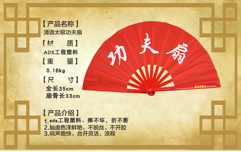 ABS Пластиковый вентилятор Pacific вентилятор кунг -фу вентилятор округлый вентилятор красный золотые золотые китайские вентиляторы боевых искусств Фонар