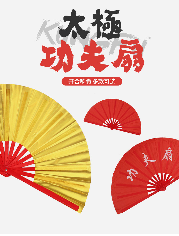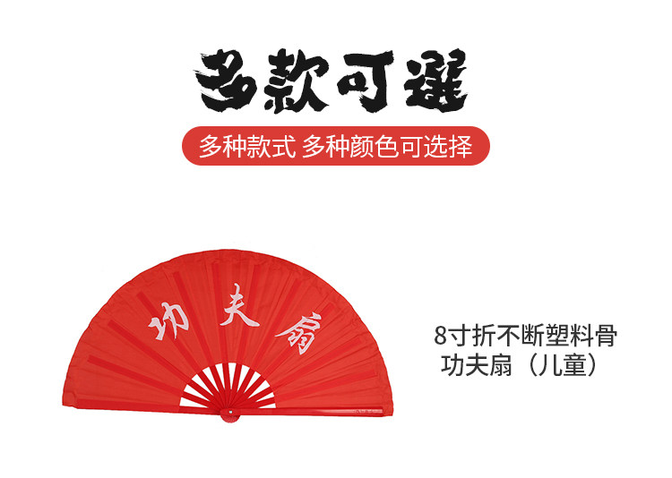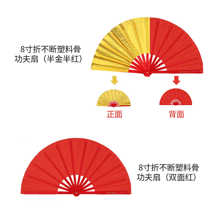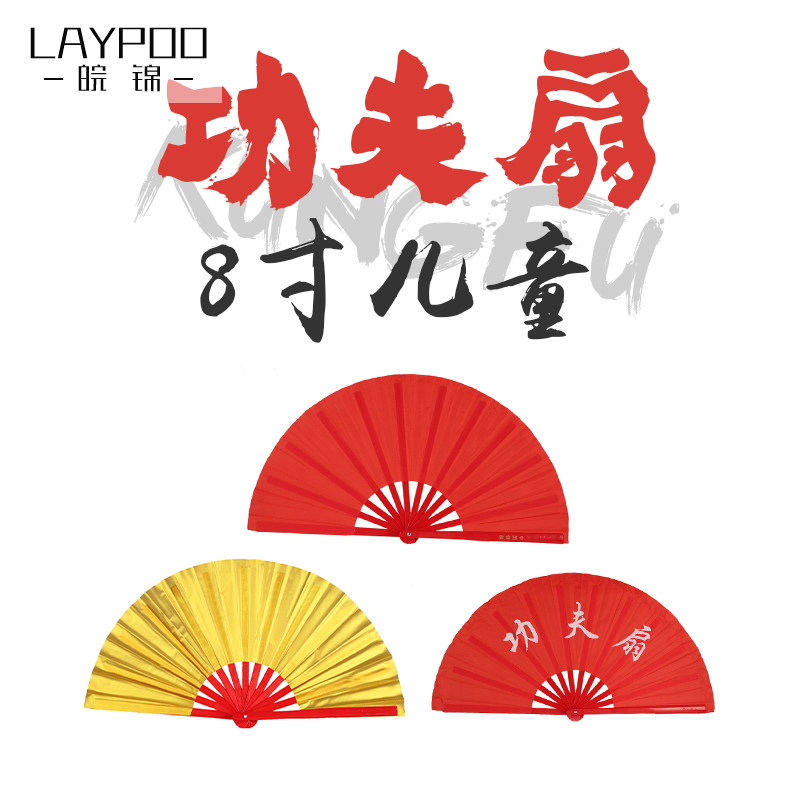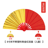 8 -INCH Детский кунг -фу вентилятор вентилятор вентилятор Пластиковый красная костяная кость Пластиковая простая золотая поверхность Тайджи -однополосное танец