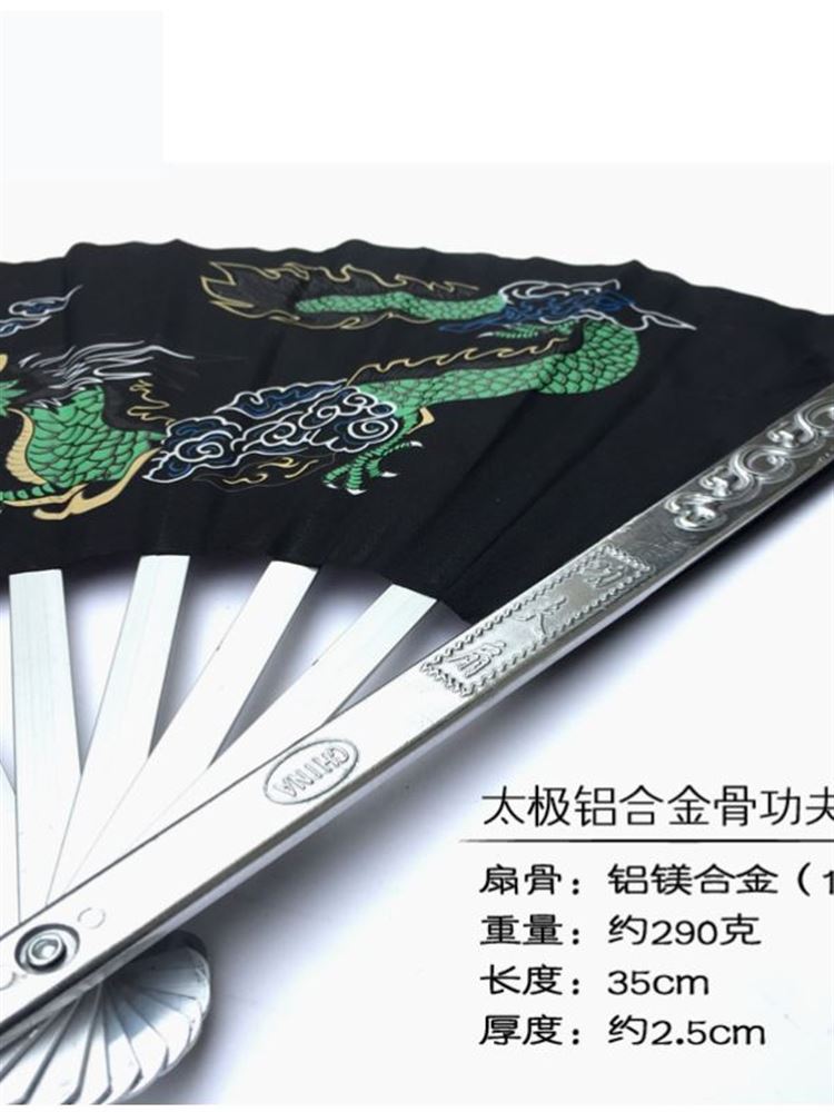 - Aluminum-магний сплав】 Tai Chi вентилятор серебряный черный цвет-O66