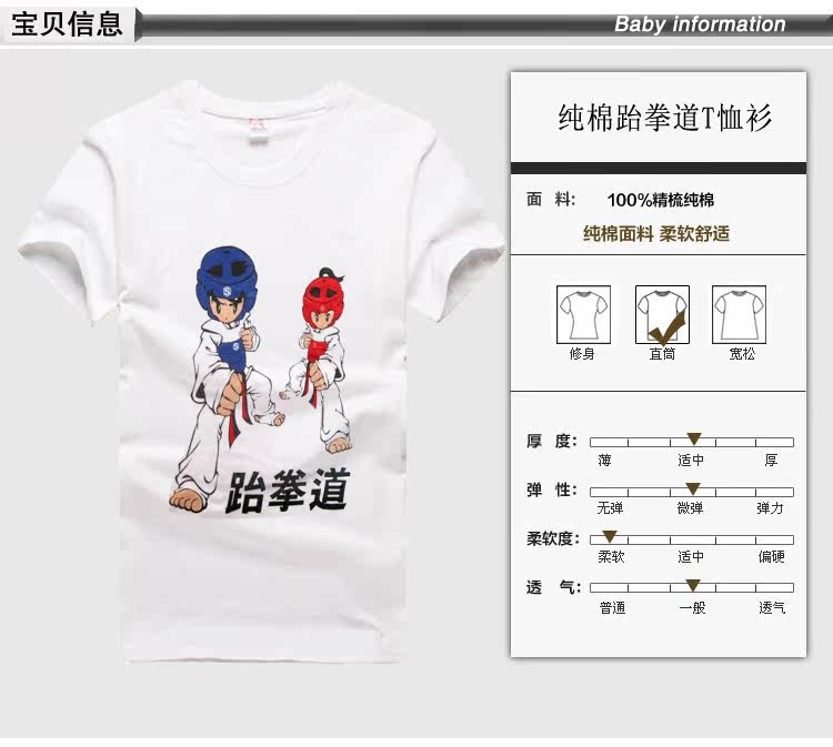 Летняя хлопковая футболка с коротким рукавом для тхэквондо, короткий рукав