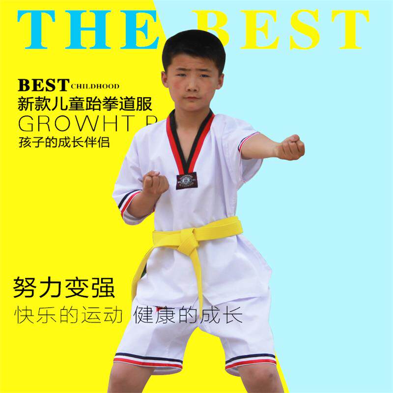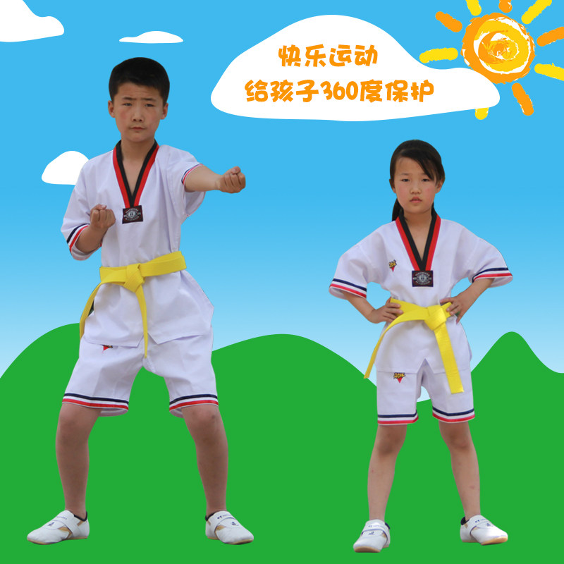 Хлопковый летний детский лонгслив для тхэквондо подходит для мужчин и женщин для тренировок, короткий рукав, поликоттон