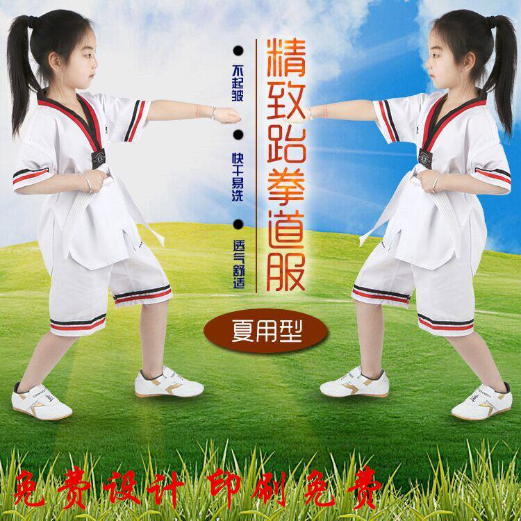 Летняя хлопковая олимпийская летняя одежда для детей и взрослых для тхэквондо для школьников подходит для мужчин и женщин для тренировок, короткий рукав, подходит для начинающих, подходит для студента