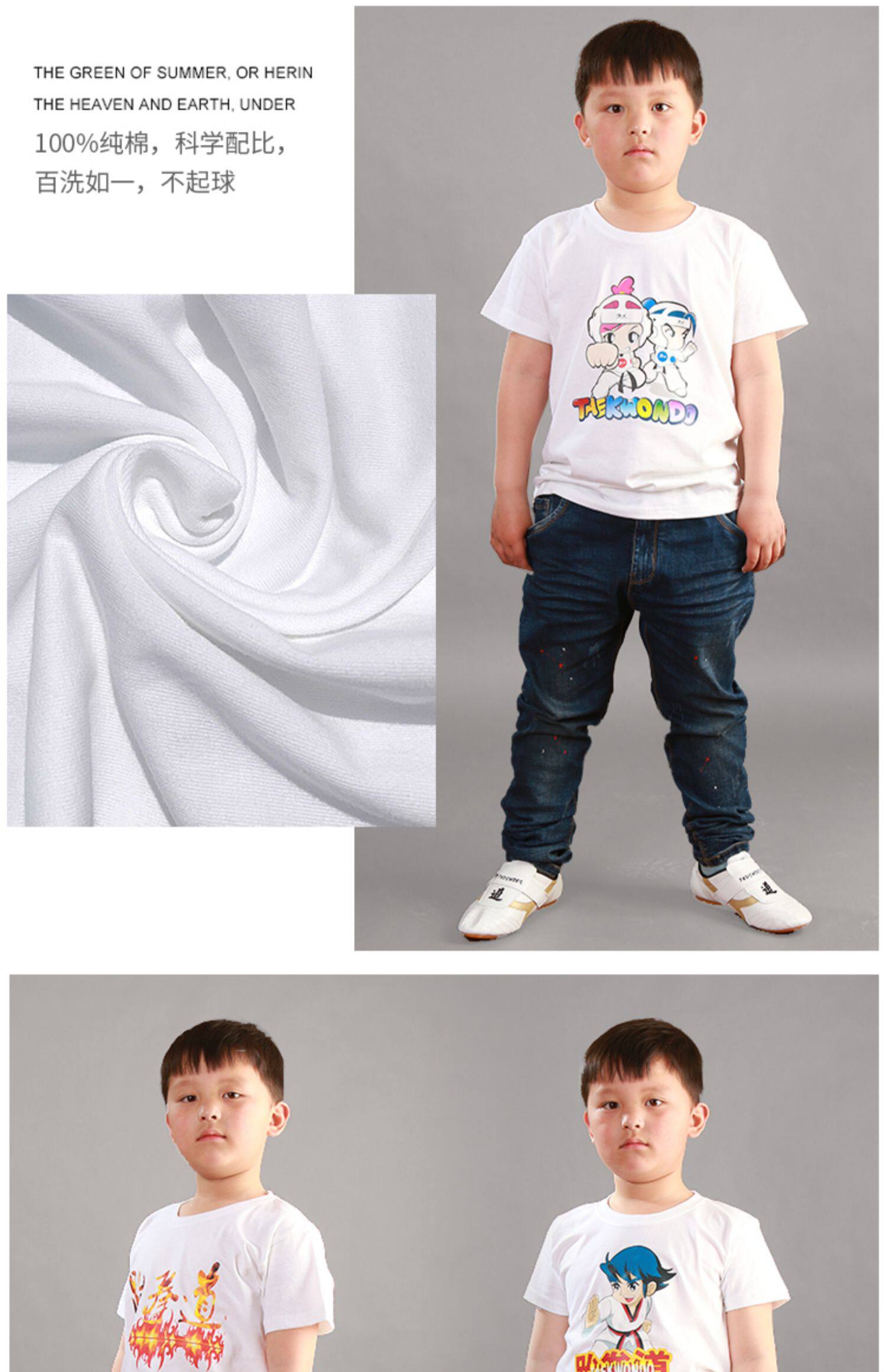 Футболка с коротким рукавом для тхэквондо, хлопковая рубашка, делается под заказ, из ворсистого хлопка