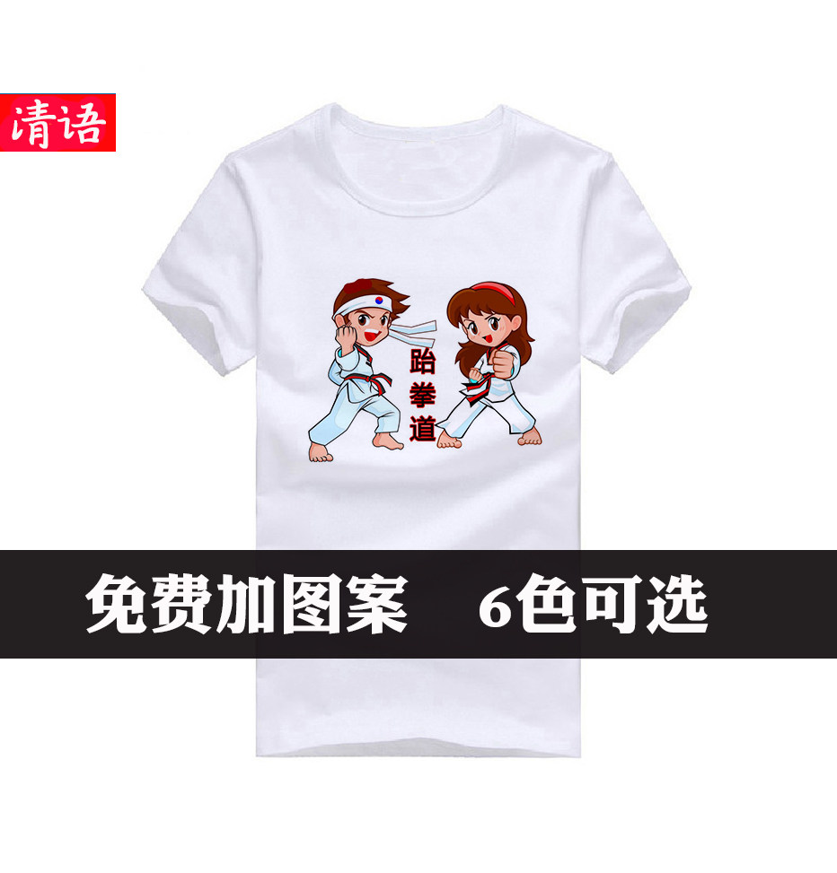 Детская черная футболка с коротким рукавом для тхэквондо подходит для мужчин и женщин для тренировок, летняя одежда, делается под заказ, детская одежда, подходит для начинающих