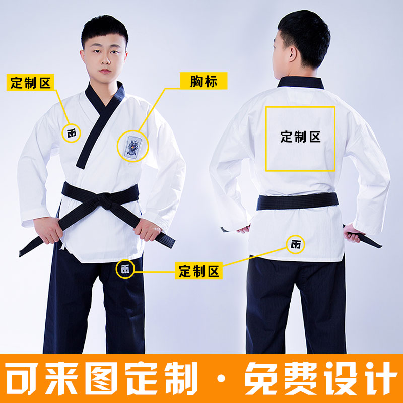 Служба импульса одежды для взрослых TAEKWONDO для обучения для обучения детской демонстрационной службы Служба Служба Служба Служба Производительности Покажите хлопковые TKD -печатные слова