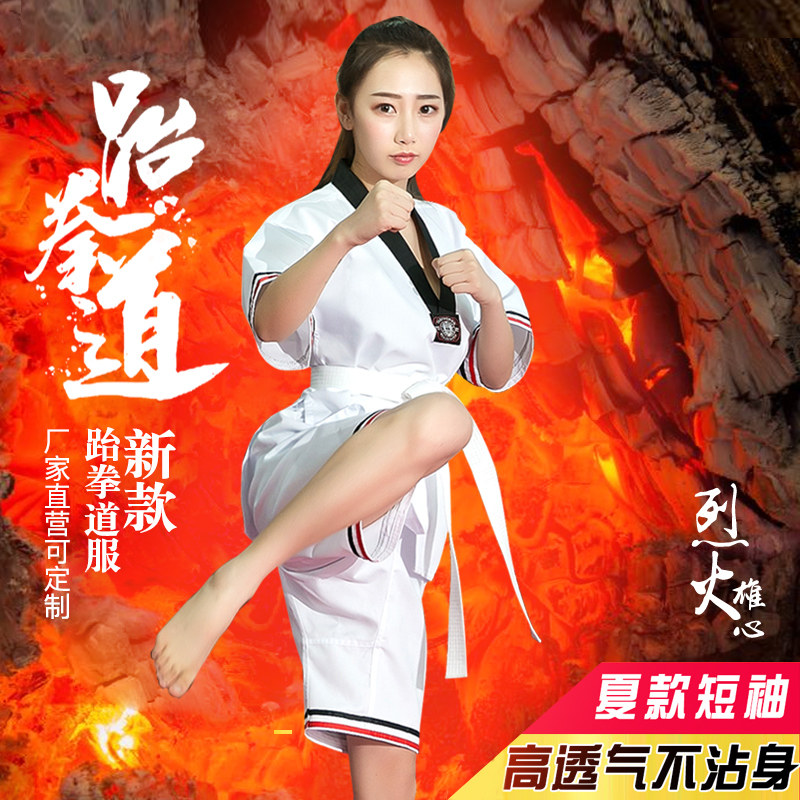 Детская хлопковая футболка для тхэквондо, летняя одежда подходит для мужчин и женщин для тренировок, подходит для начинающих