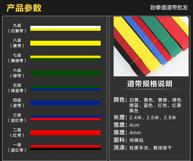 Детский ремень для тхэквондо, с вышивкой, 4 см