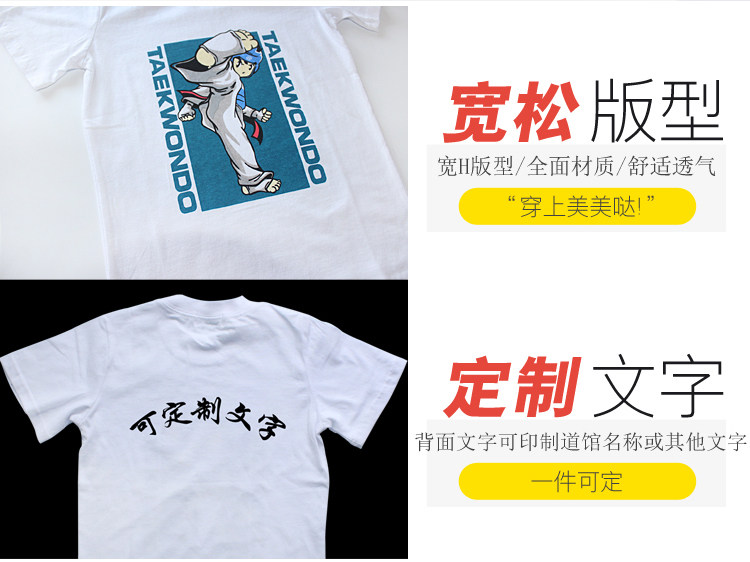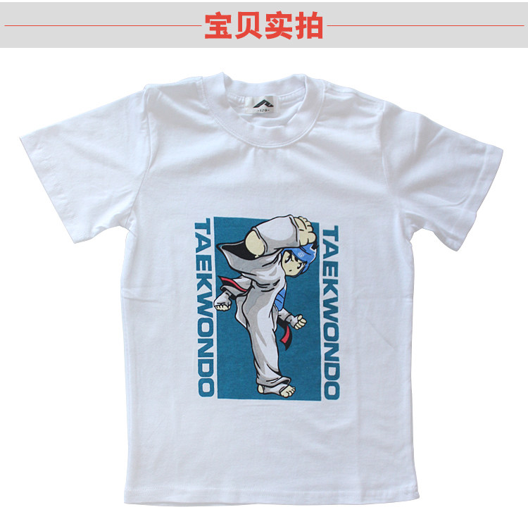 Летняя детская хлопковая футболка для тхэквондо, короткий рукав