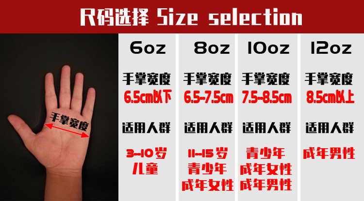 | Боксерские перчатки, размер: | 6oz, 8oz, 10oz, 12oz |