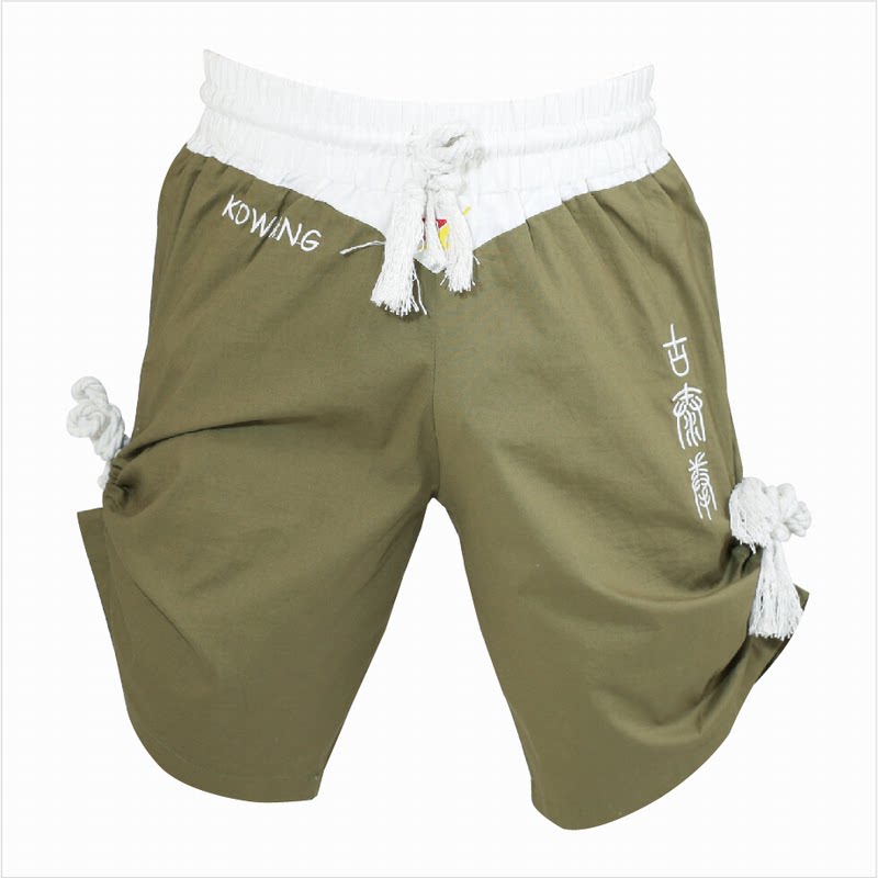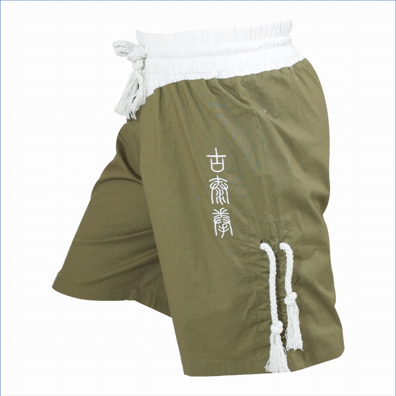 Зеленые хлопковые комфортные шорты для единоборств, с вышивкой, свободный крой