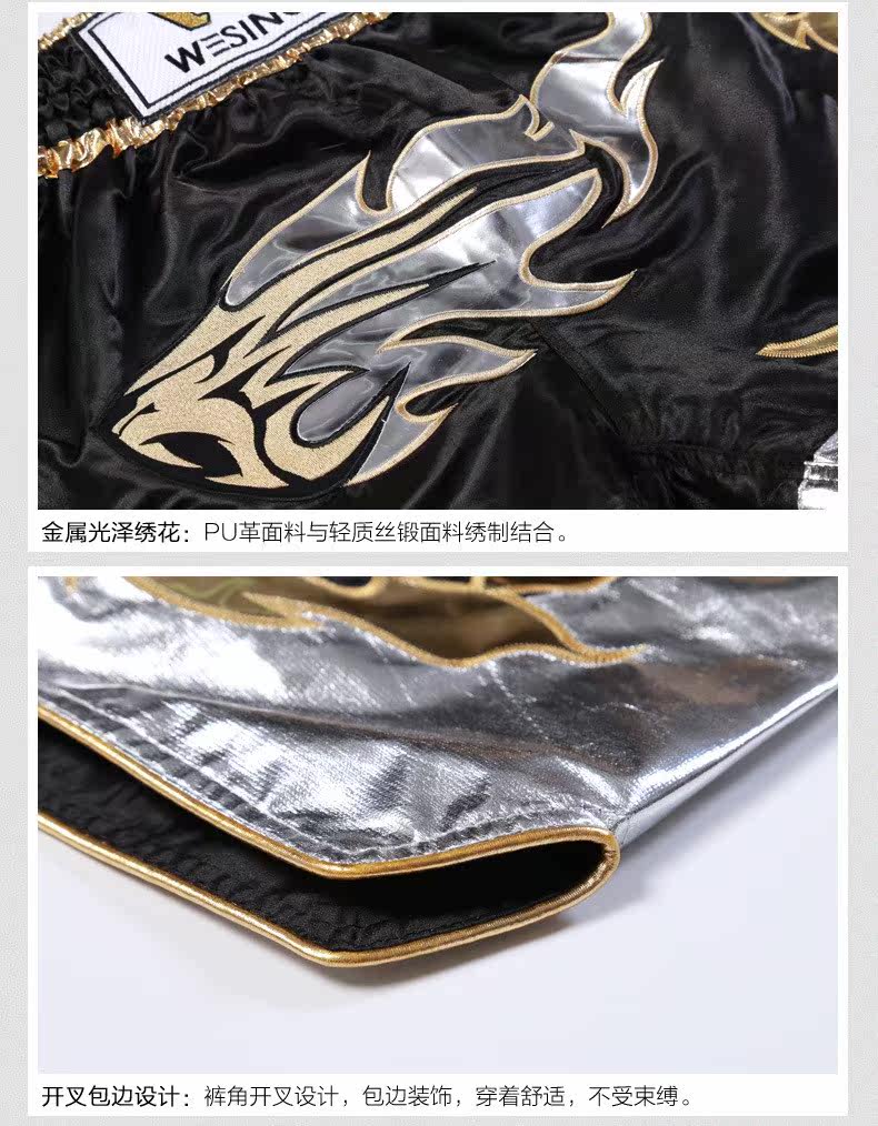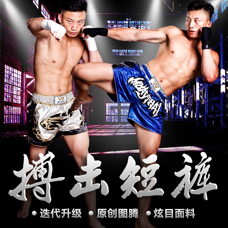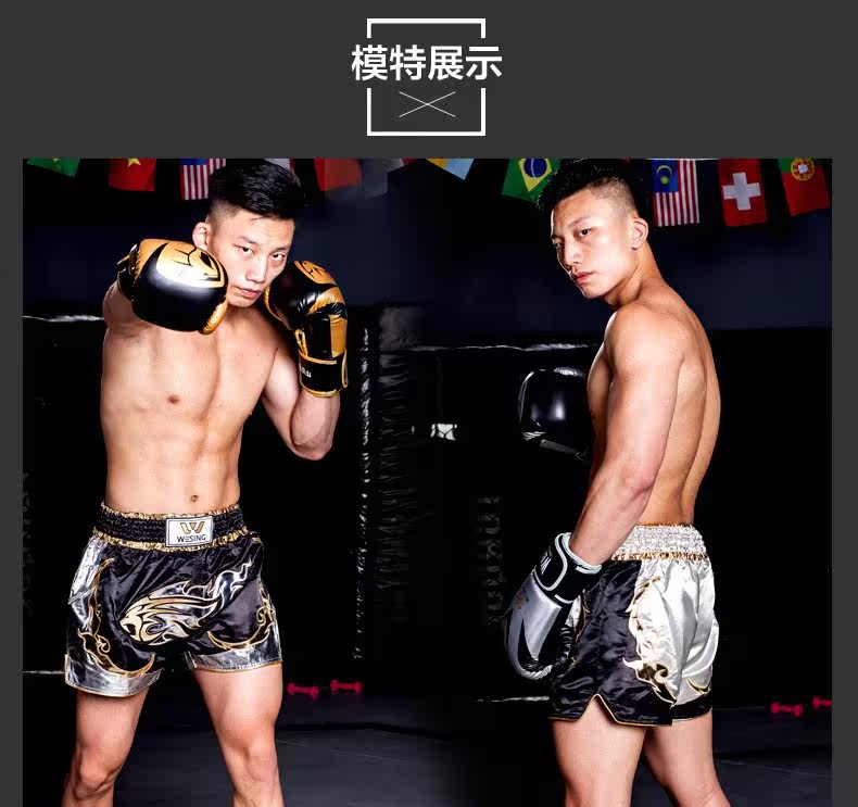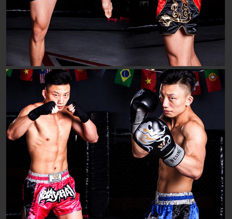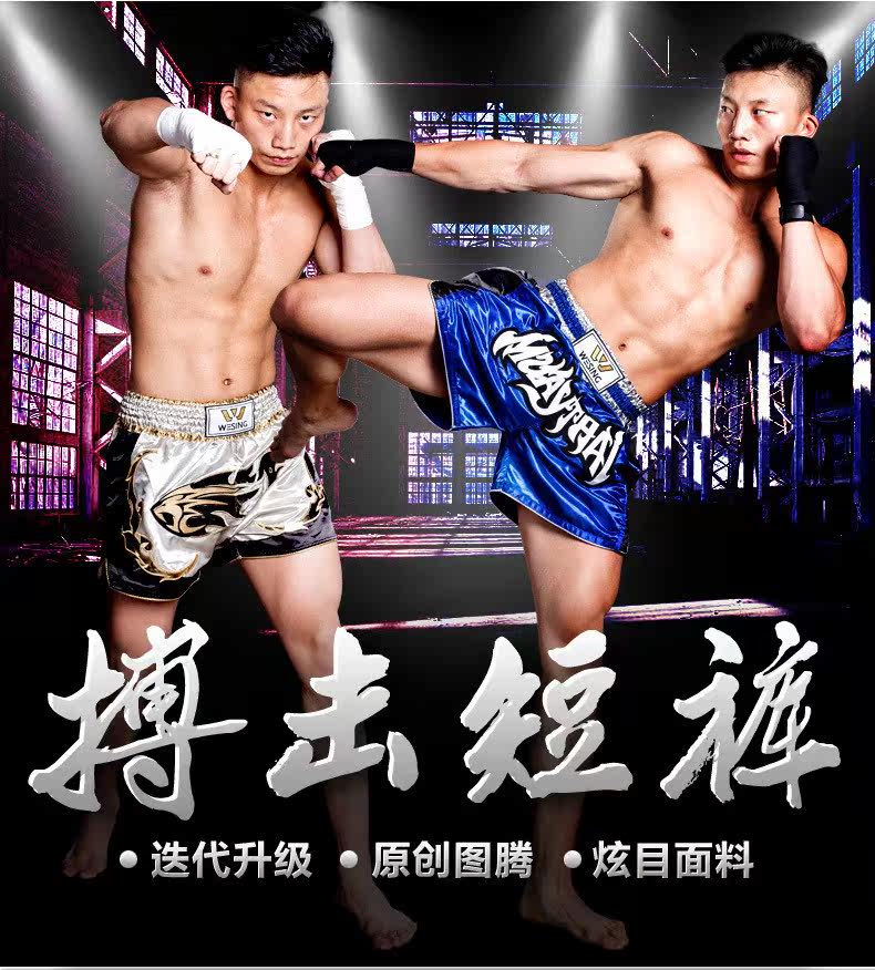 Девять -дневные муай тай -тайские короткие брюки борьба соревнования по тренировкам Санда штаны, вышитые слов свободные мужские триппи -брюки
