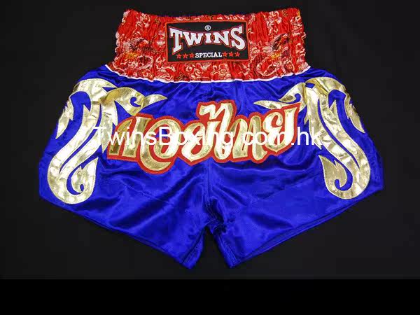 Подлинный Thai Special Muay Thai Pants 10611 Золотая татуировка синий и красный