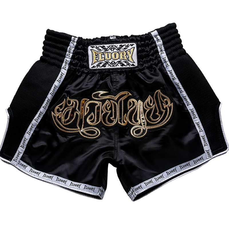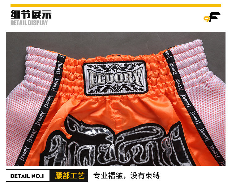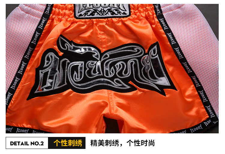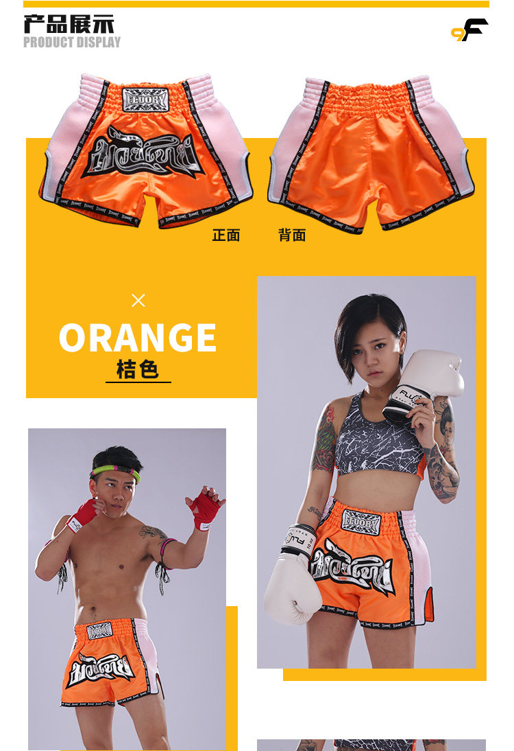 Fluory 2018 Новые шорты Muay Thai, мужчины и женщины, черный апельсин, голубые боевые боевые шорты, детские разбросанные услуги