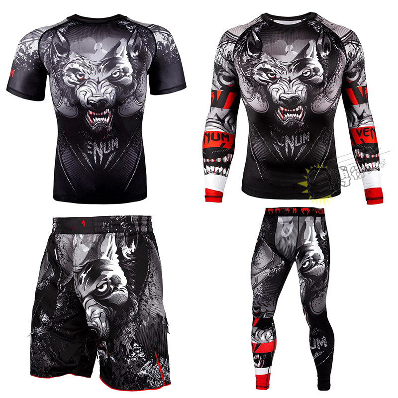 Gearwolfrashguard с трудом с длинными брюками Muay thai Boxing Sanda Fittings Long Short -sleeved
