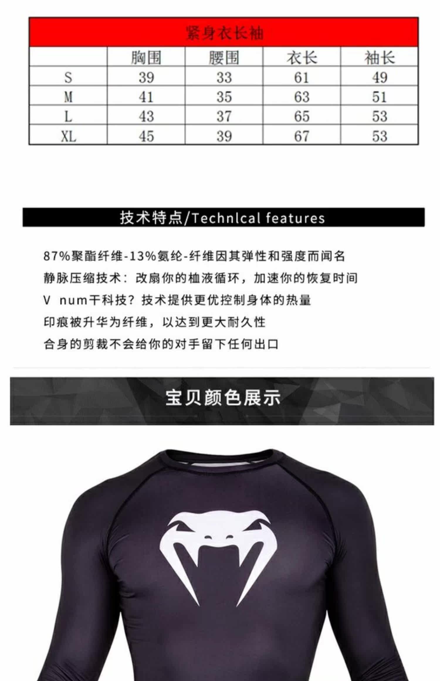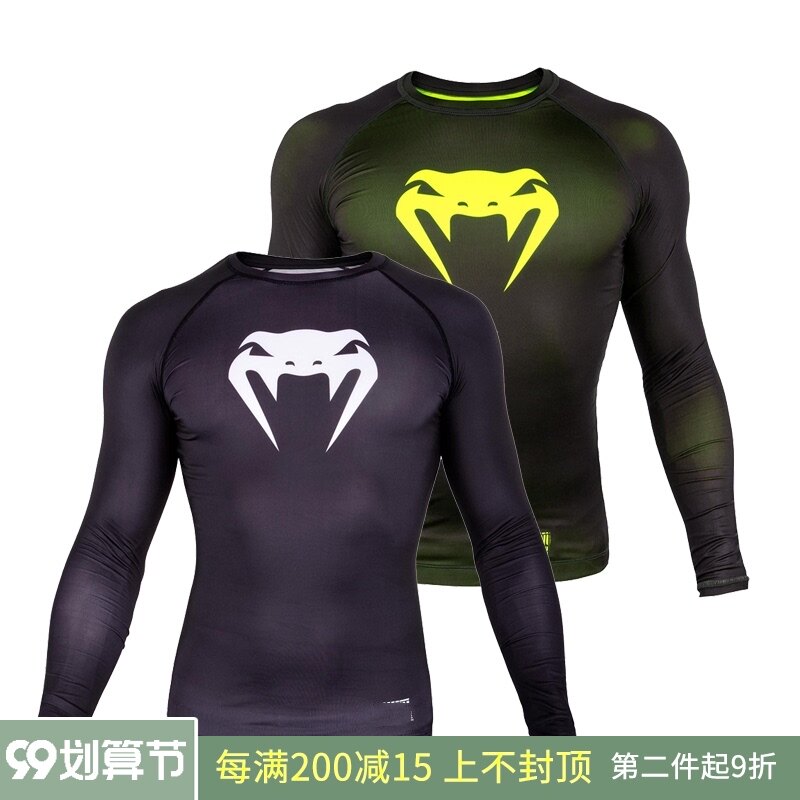 Venum Contender Compression Venom Фитнес, борьба с борьбой с MMA с тугими длинными рукавами