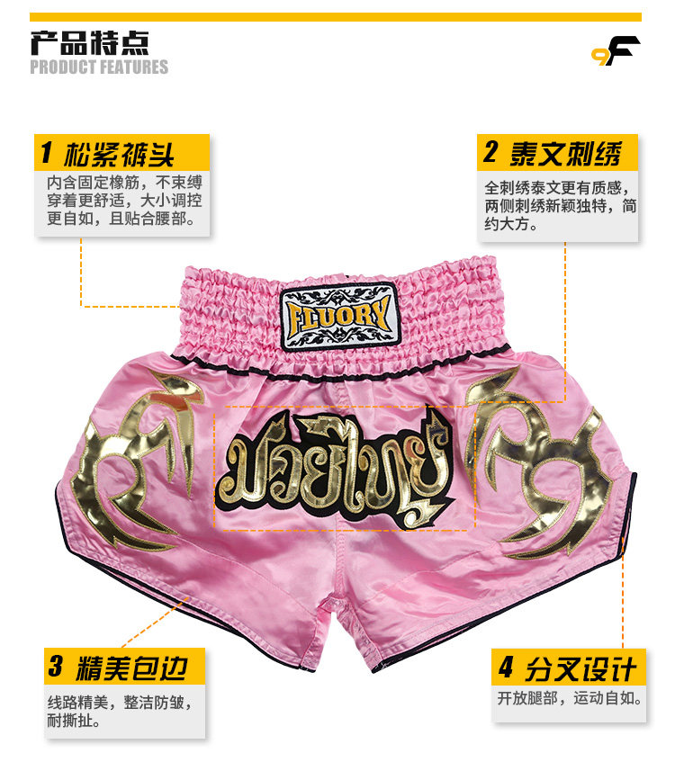Fluory Fire Battle Training Training Adult Children's Competition Sanda Boxing Clothing Muay Taai Muay Thai Thai Shorts