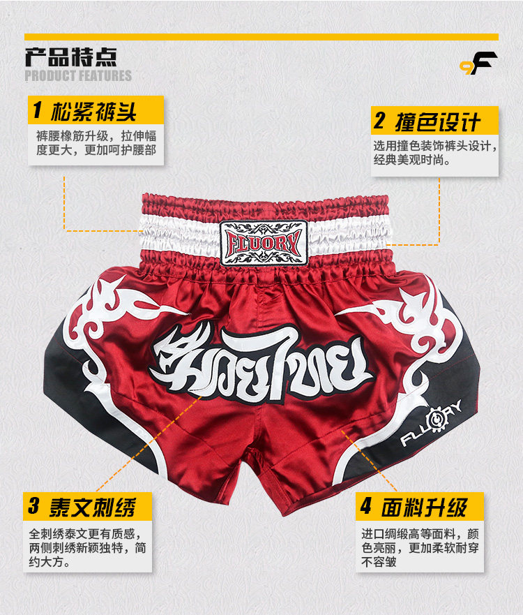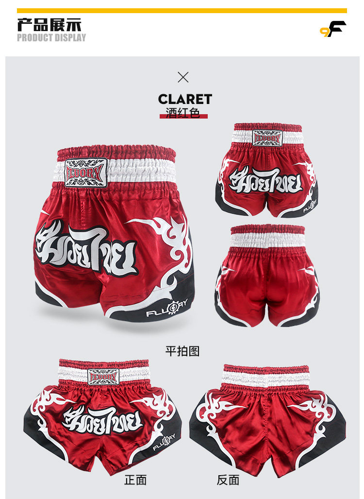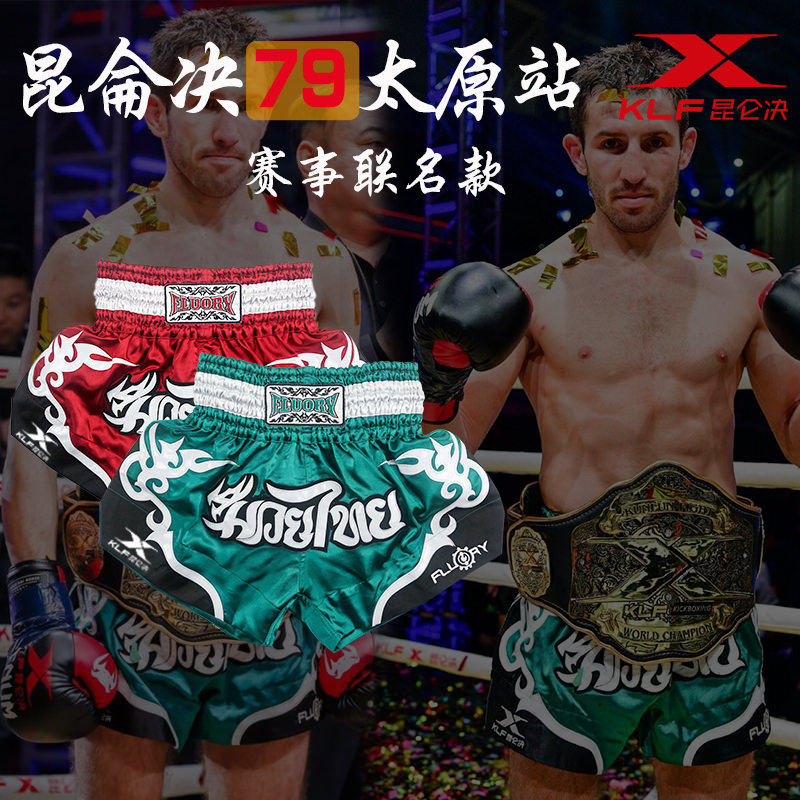 Fluory Thai Boxing Banns Мужчина Kunlun Решение короткие Takskin для взрослого конкуренции Бесплатный боевой тренировочный сервер, боевые брюки, профессионал