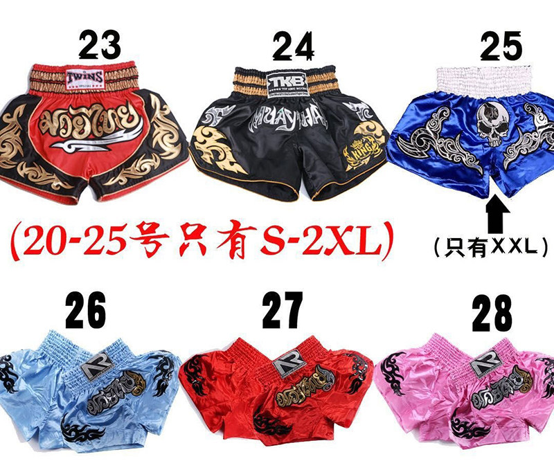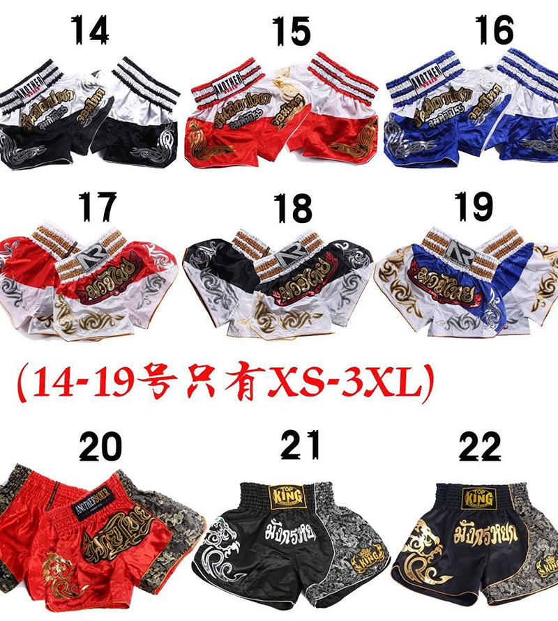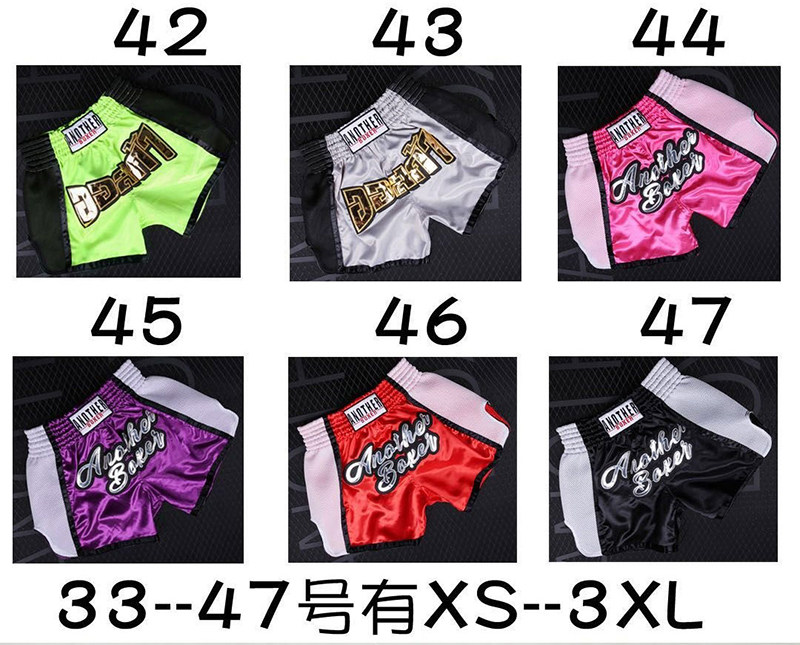 Профессиональные шорты Muay Thai Мужчины и женщины рассеяли боксерские штаны Аутентичный боевой боевой учебный костюм