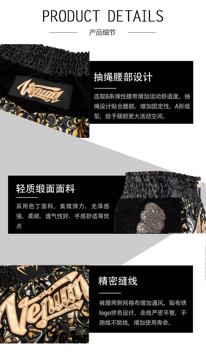 Отравление венумом жидкие тайские боксерские шорты боксерские штаны Сан -боевые штаны Мужчины и женщины сражаются с шортами