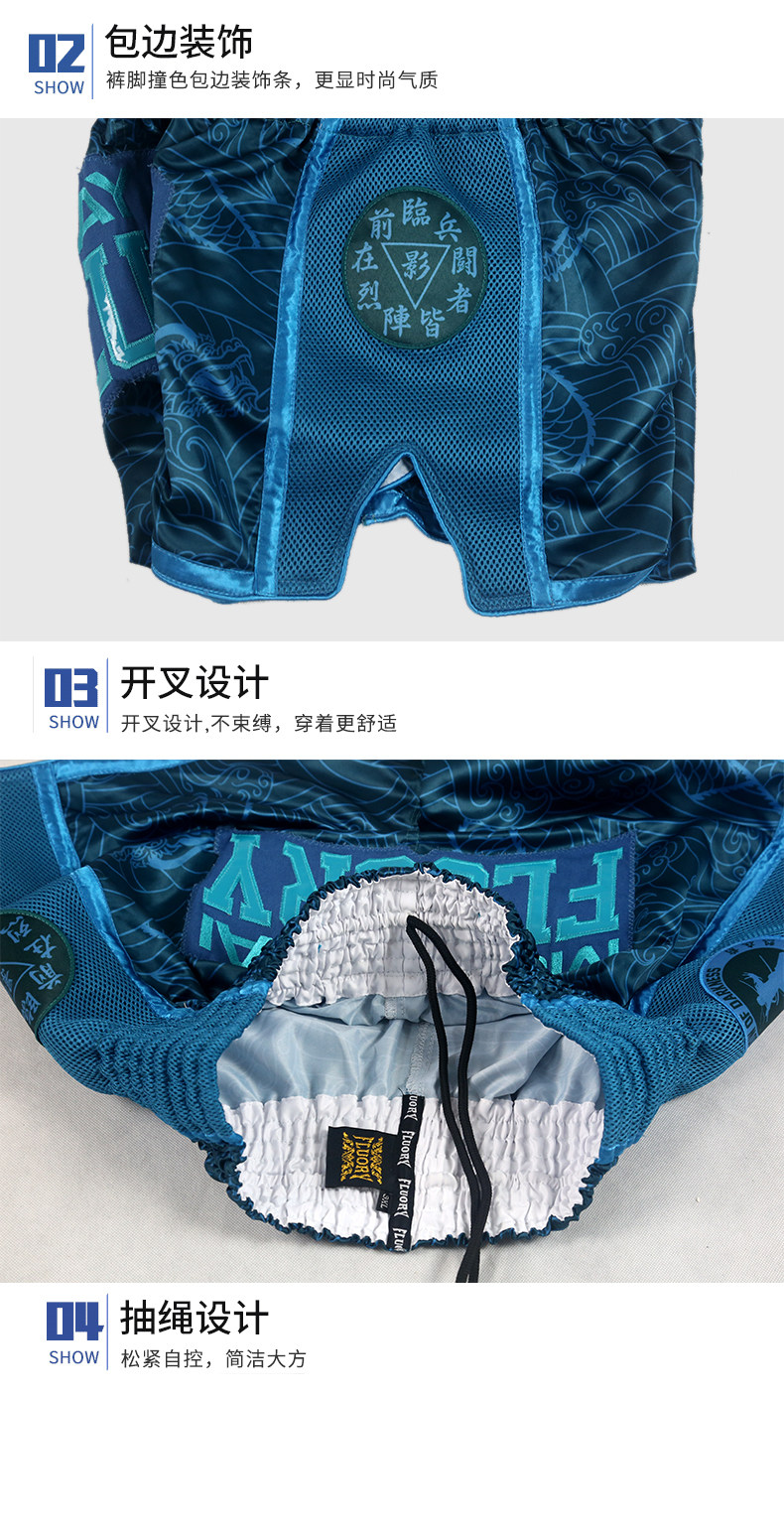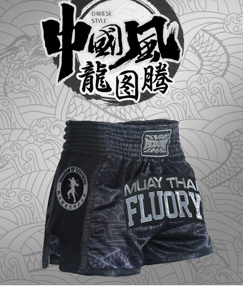 Fluory Muay Thai Shorts Дети, разбросанные по швейным брюкам, боевые соревнования по боксам, напечатанные боксерские штаны, взрослые