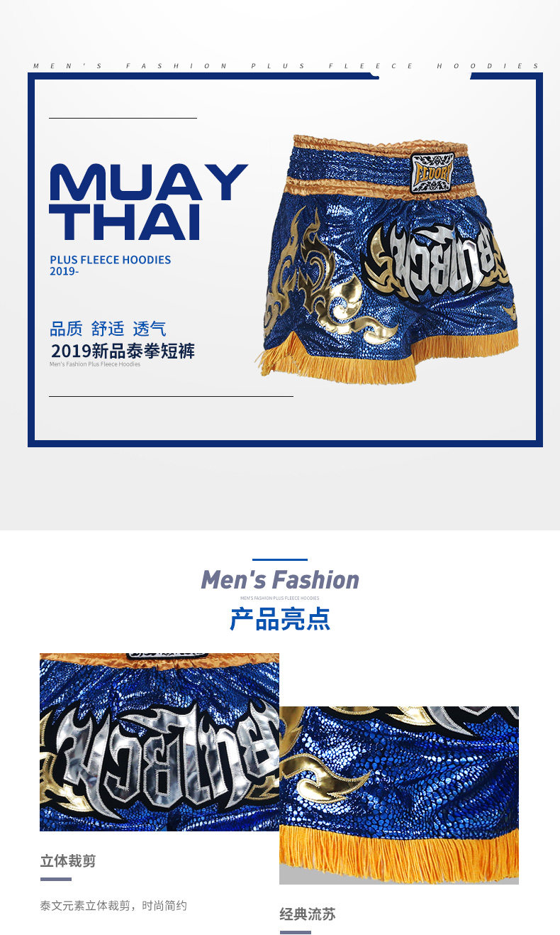 Fluory Fire Block 2019 Новые шорты Muay Thai Мужской модный поток борьба с короткими штанами Sanda Boxing Server