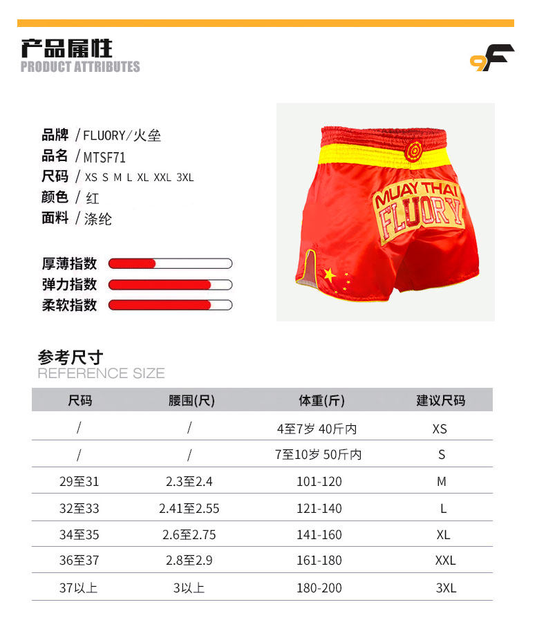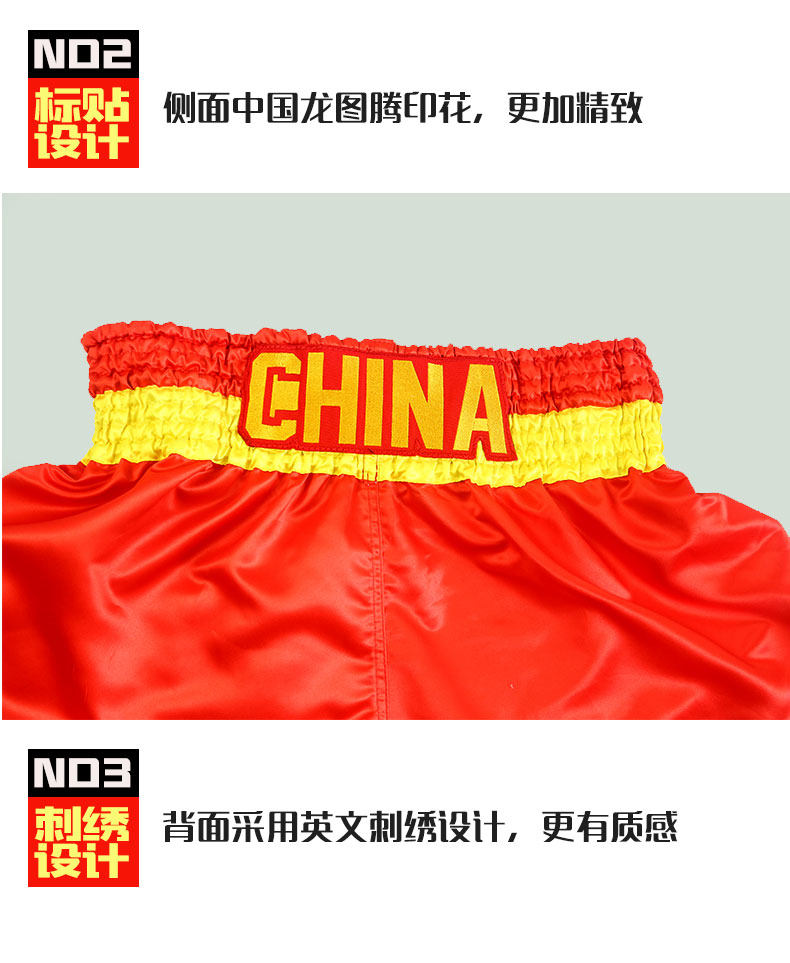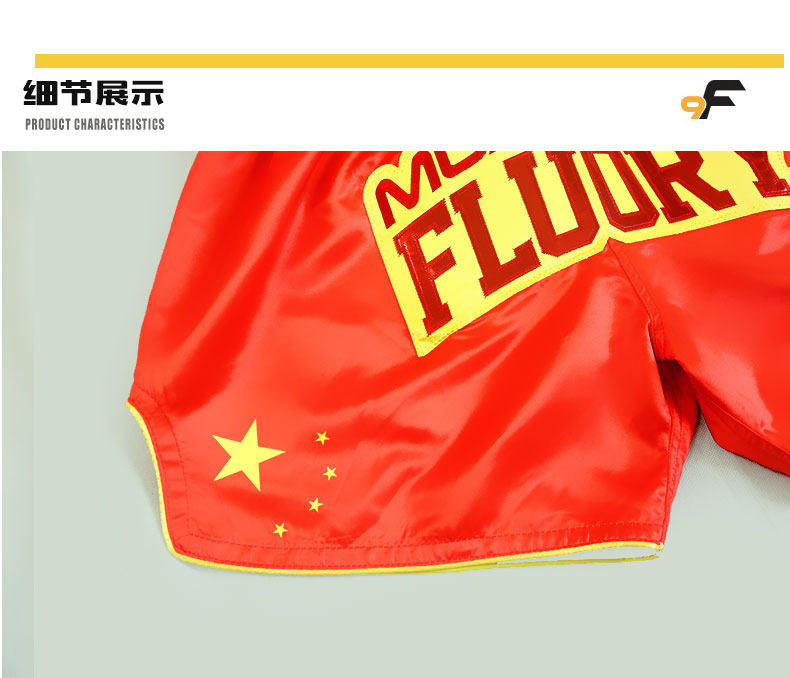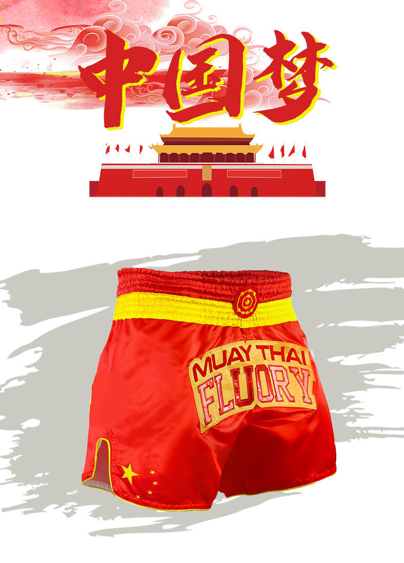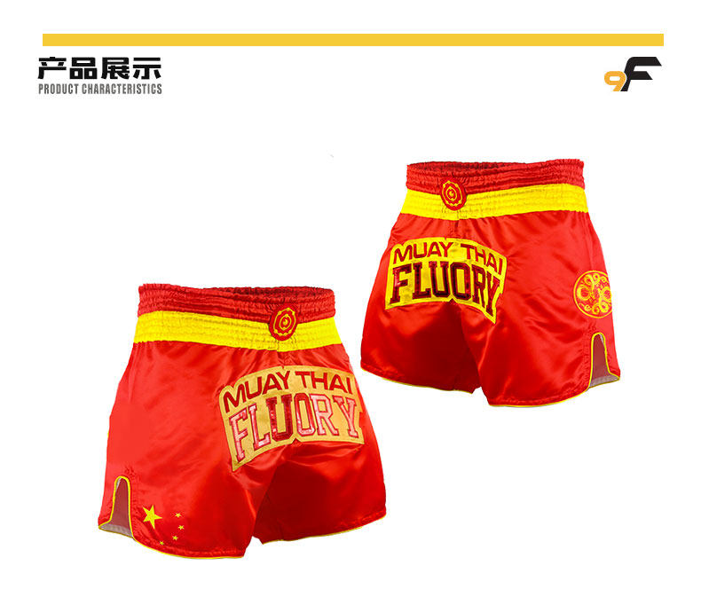 Флуория Китай Дракон Дракон Муай Тай Шорты Тайская профессиональная одежда Санда мужская красная боевая боевая борьба Учебное костюм