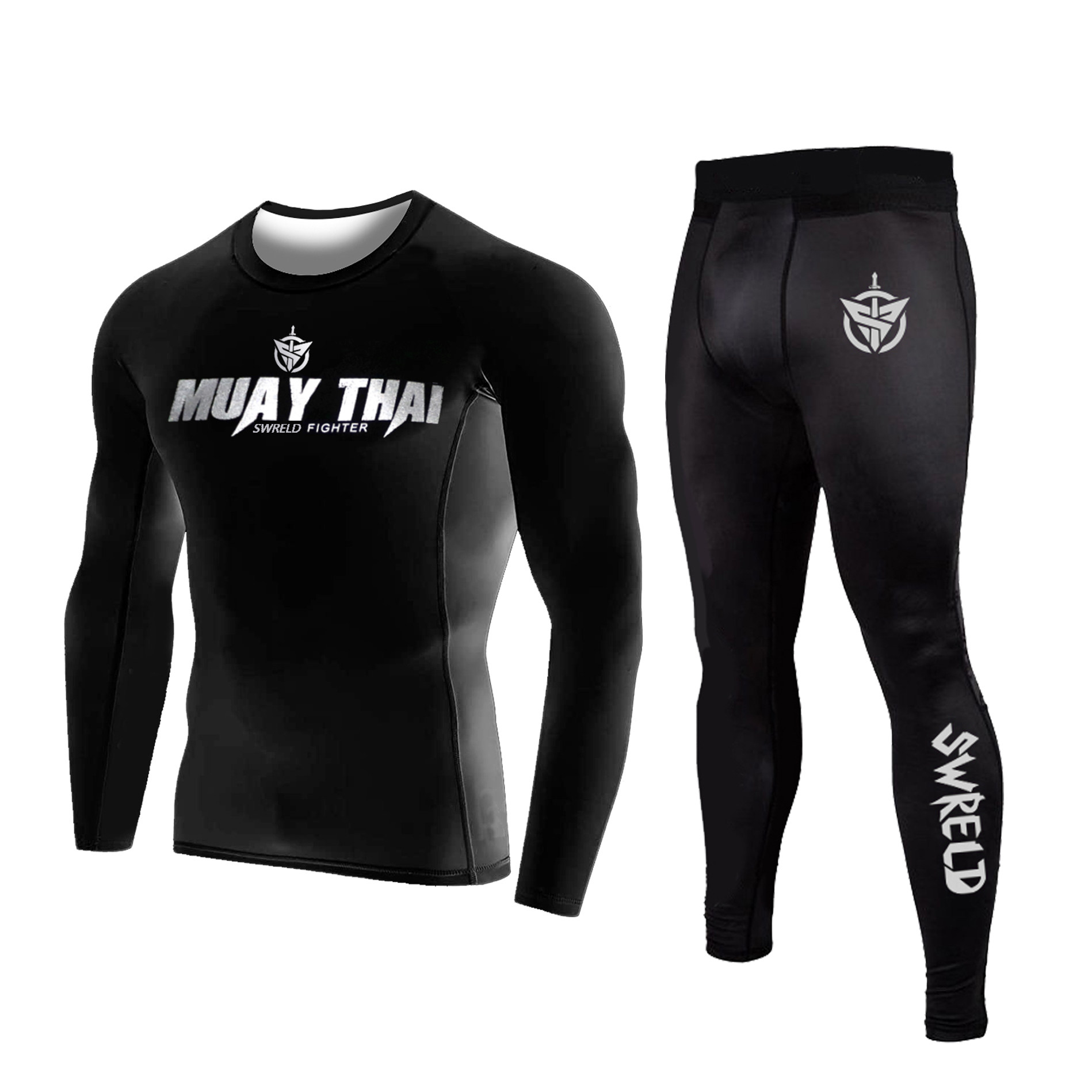 Боксерский спортивный лонгслив для спортзала, нарукавники, флисовый комплект, в обтяжку