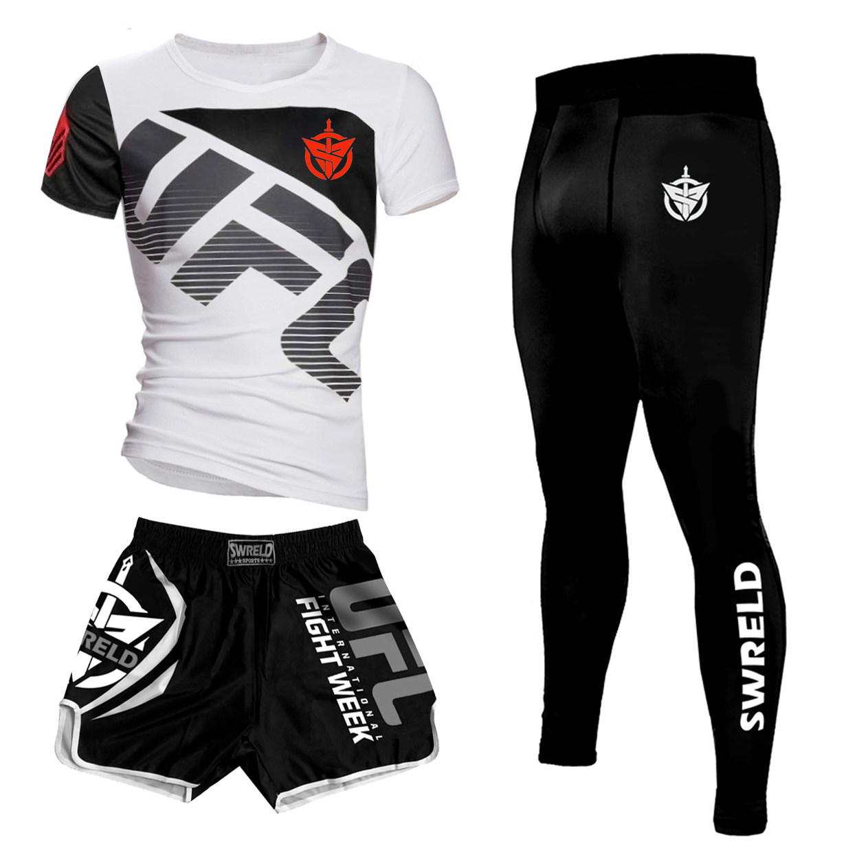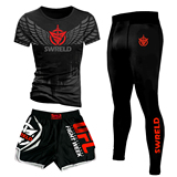 Комплект, футболка, боксерские шорты для тренировок, штаны, в обтяжку, короткий рукав, 3 предмета
