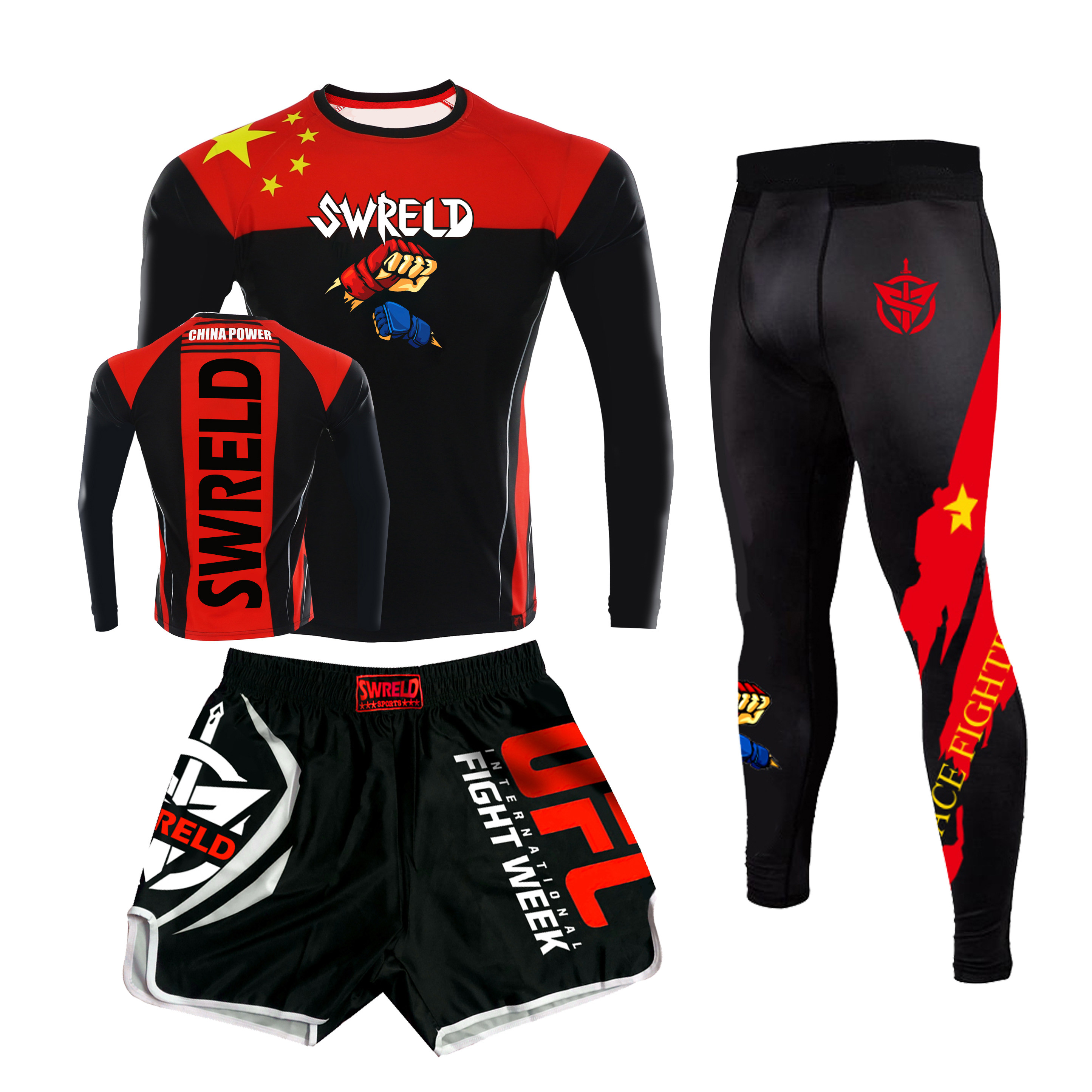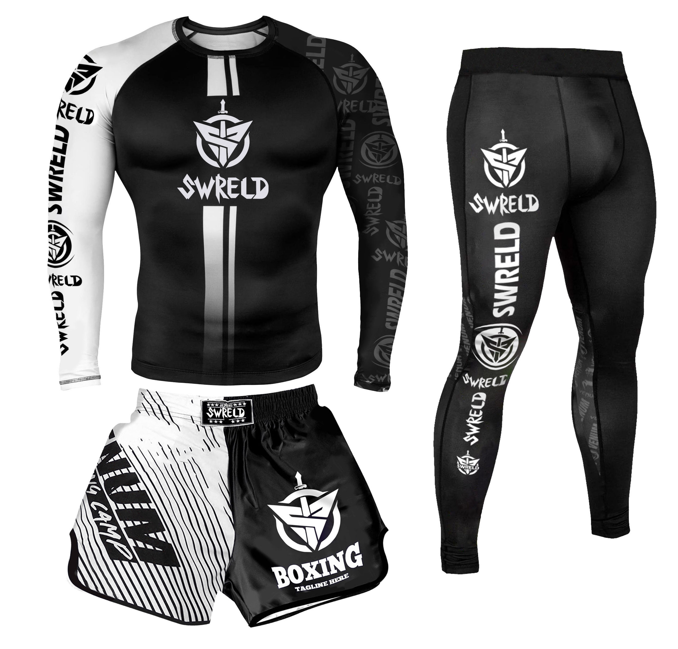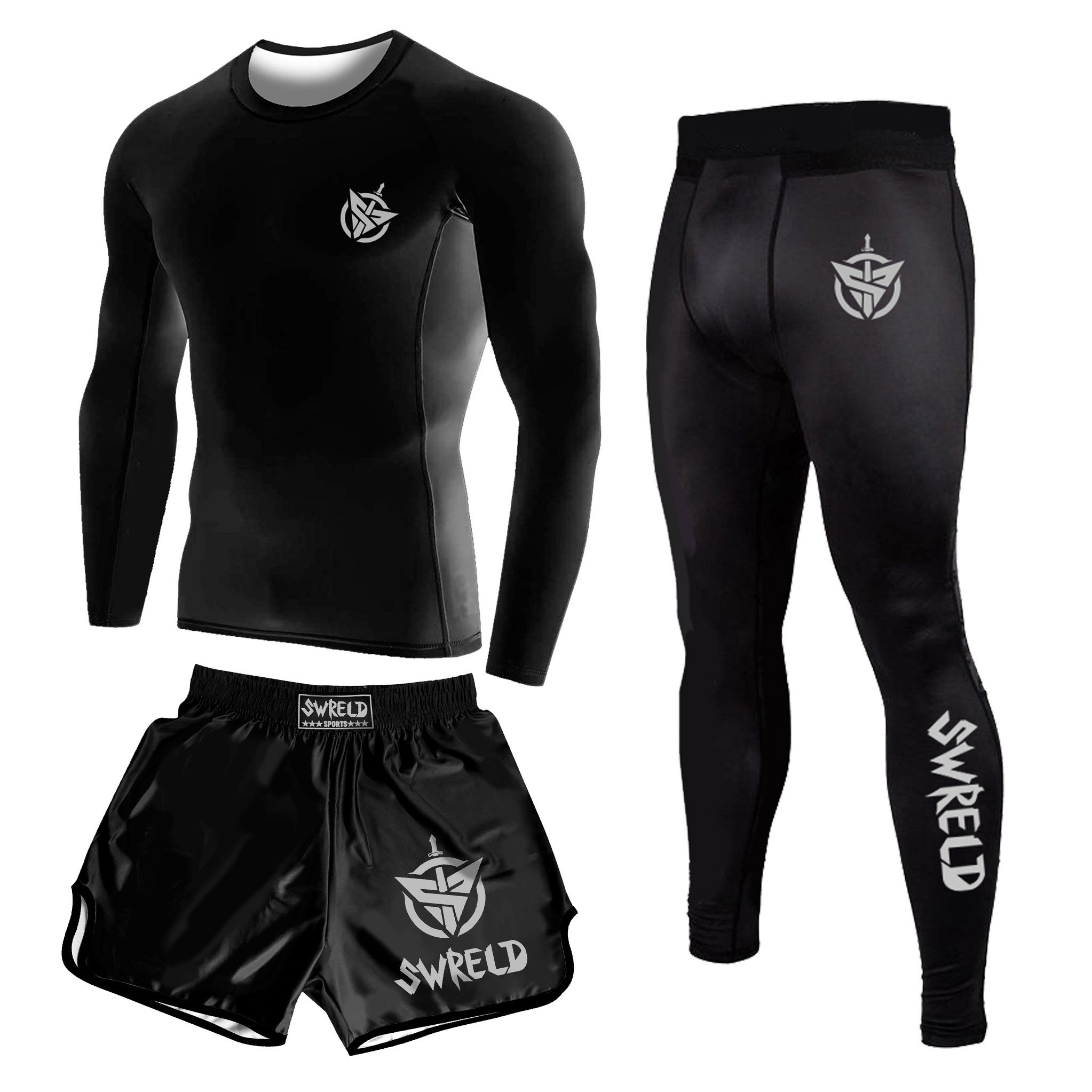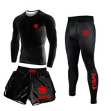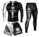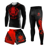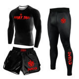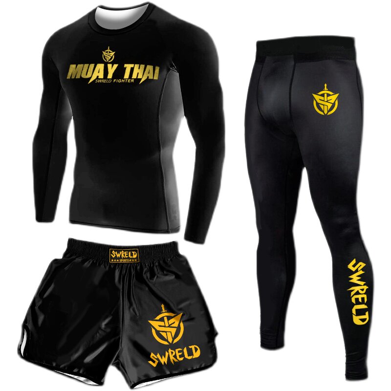 Боксерский мужской спортивный комплект для спортзала, шорты для тренировок, быстросохнущий лонгслив, 3 предмета