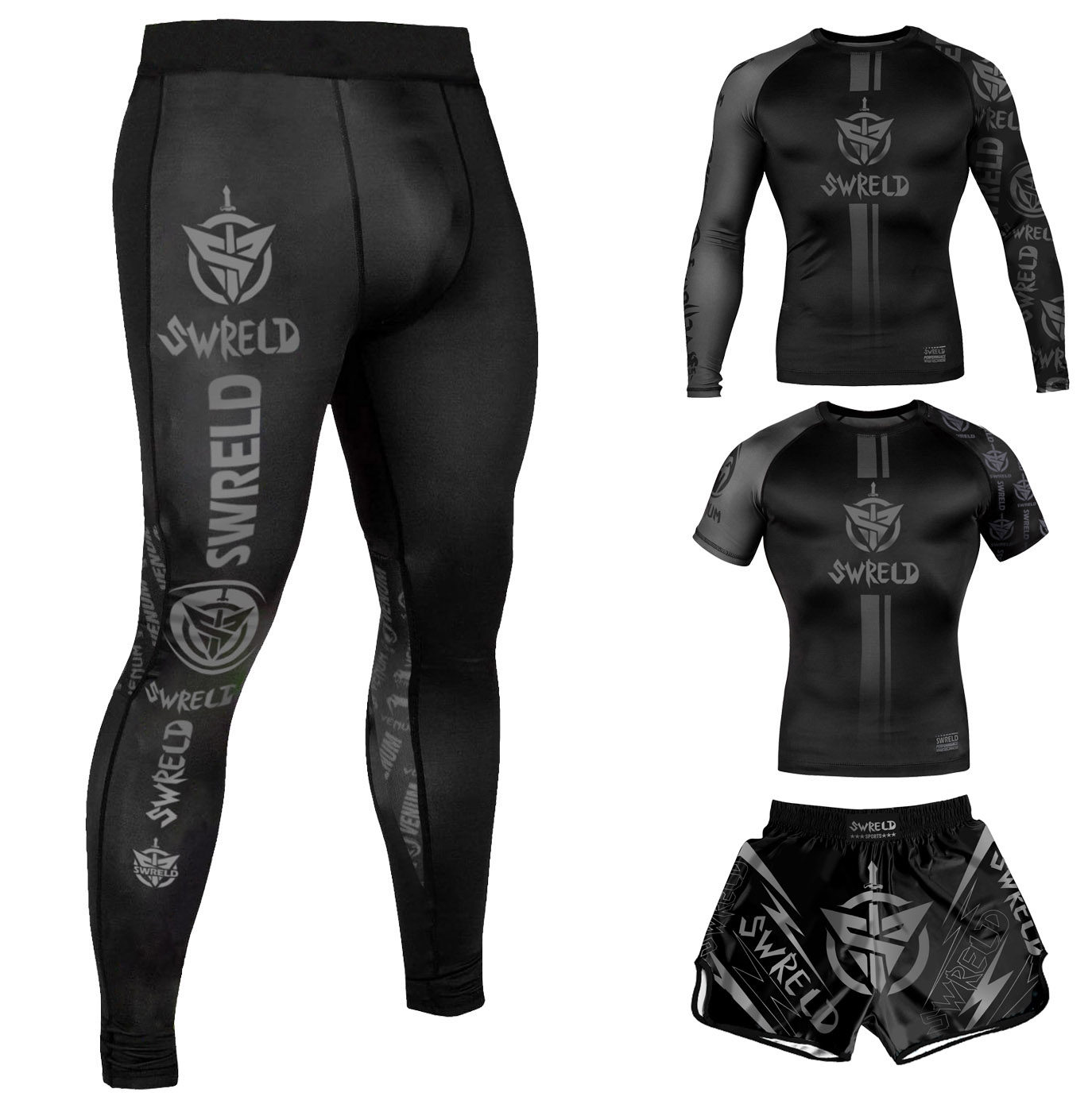 SWRELD Боксерский мужской комплект для спортзала, шорты для тренировок, быстросохнущий лонгслив, 4 предмета