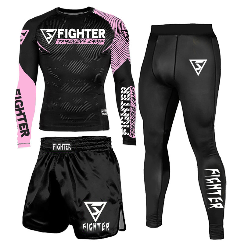 Спортивная форма для тренировок, боксерский лонгслив для спортзала, комплект подходит для мужчин и женщин, в обтяжку, 3 предмета, делается под заказ