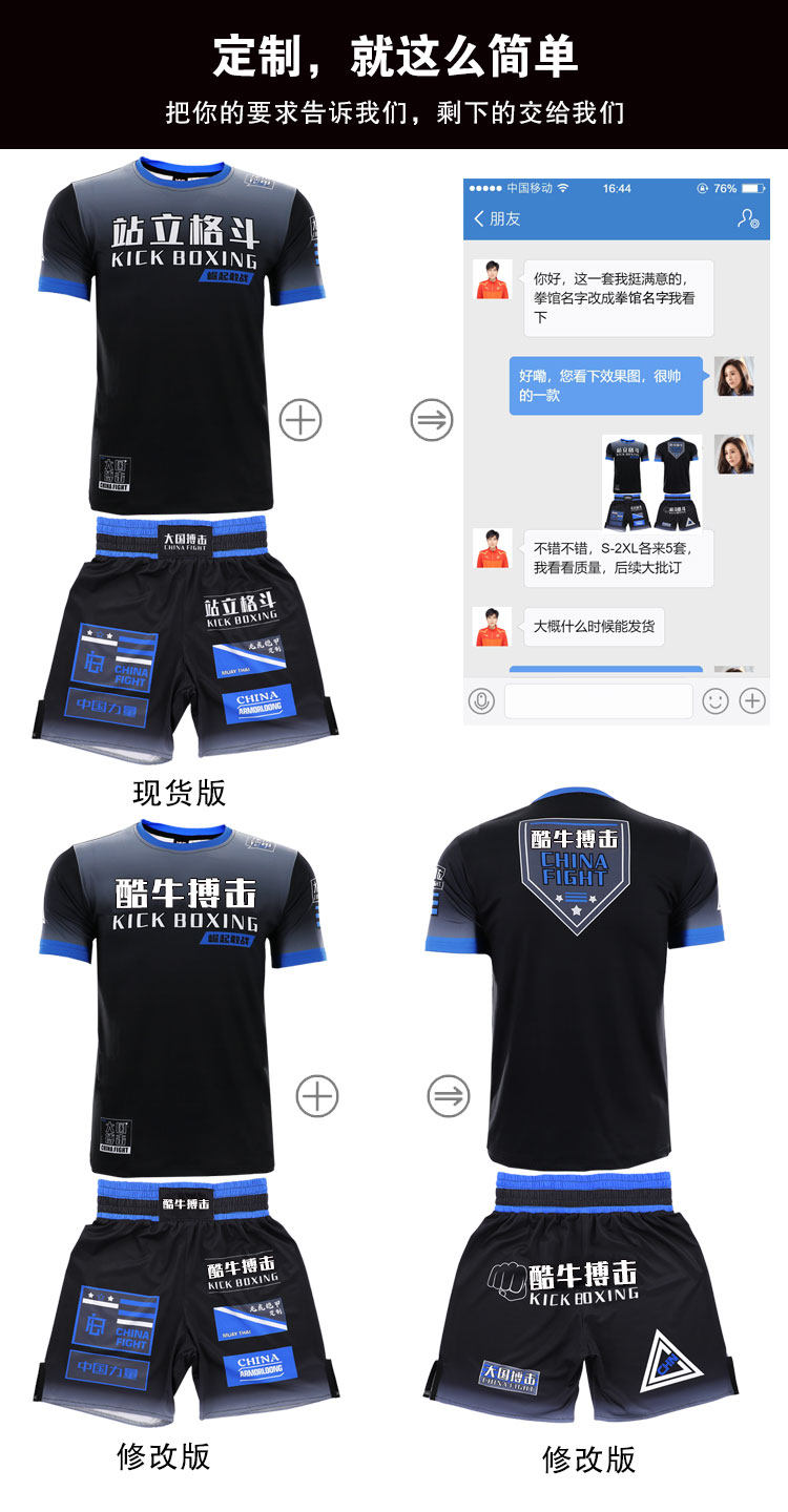 Спортивные шорты для спортзала, футболка, быстросохнущий боксерский комплект для отдыха, короткий рукав, делается под заказ