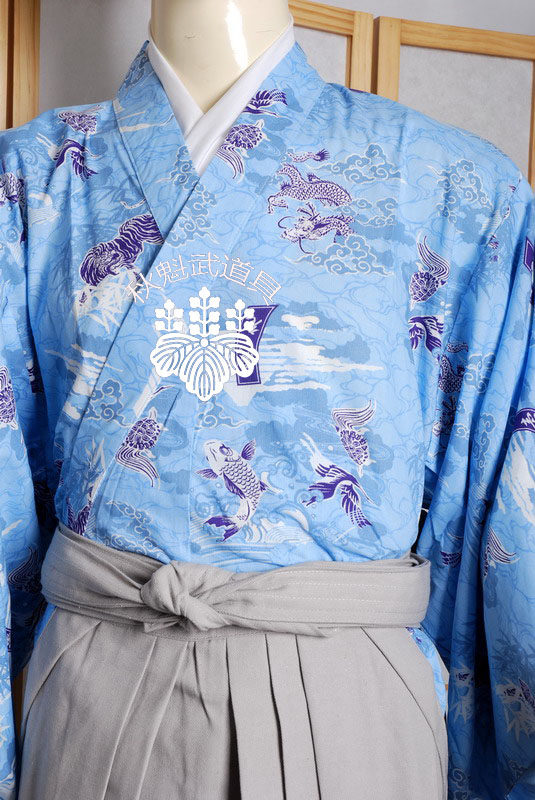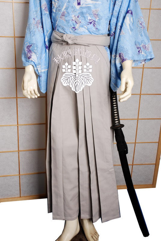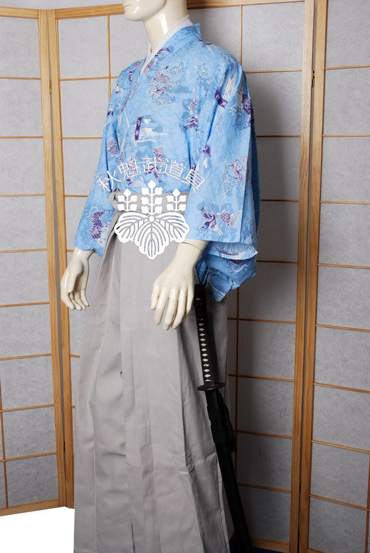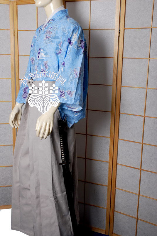 Qiu kuwu props светло -голубой облачный дракон Dragon Pure Cotton Samurai куртка+серые юбки для брюк набор японской импортированной ткани