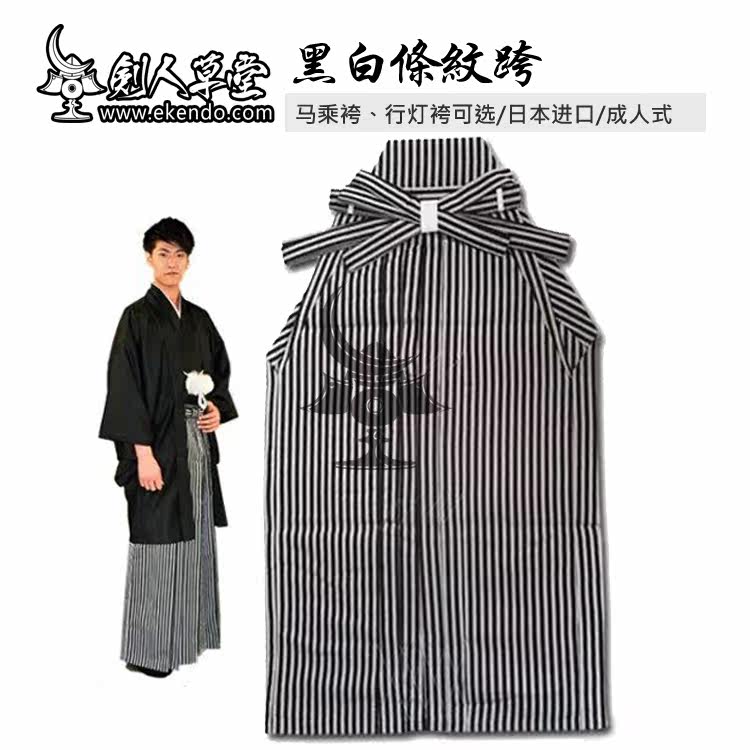 [Коттедж Мечщика] Японская мужская одежда в стиле взрослого в стиле кимоно 袴 Черно -белая полосатая верховая езда (индивидуальная)