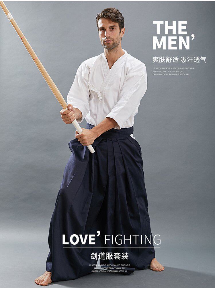 Высококачественная форма для кендо, один тяжелый, один меч, популярный начальный уровень, рекомендуется для взрослых и мужчин, бело-синяя форма для кендо, кендо хакама